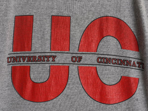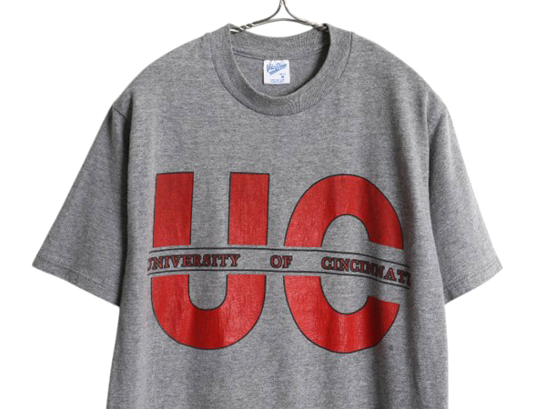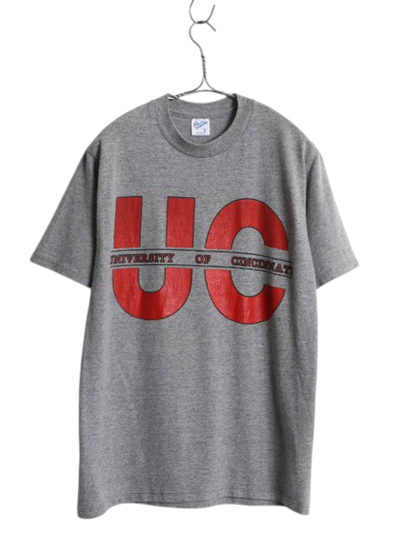 90年代のオールド カレッジ プリント 半袖 Tシャツです。 ボディは、VELVA SHEEN ( ベルバシーン ) 素材は、57% POLYESTER :43% COTTON しっかりとしたヘビーウェイト 着心地抜群の素材が使用されています。 希少な MADE IN USA ( アメリカ製 ) フロントに Cincinnati University シンシナティ 大学の カレッジプリント 古着らしい雰囲気抜群のシンプルなグッドデザイン 合わせやすい、霜降り グレー これだけで様になる商品です。 男女兼用で着て頂けます 実寸をご確認ください |