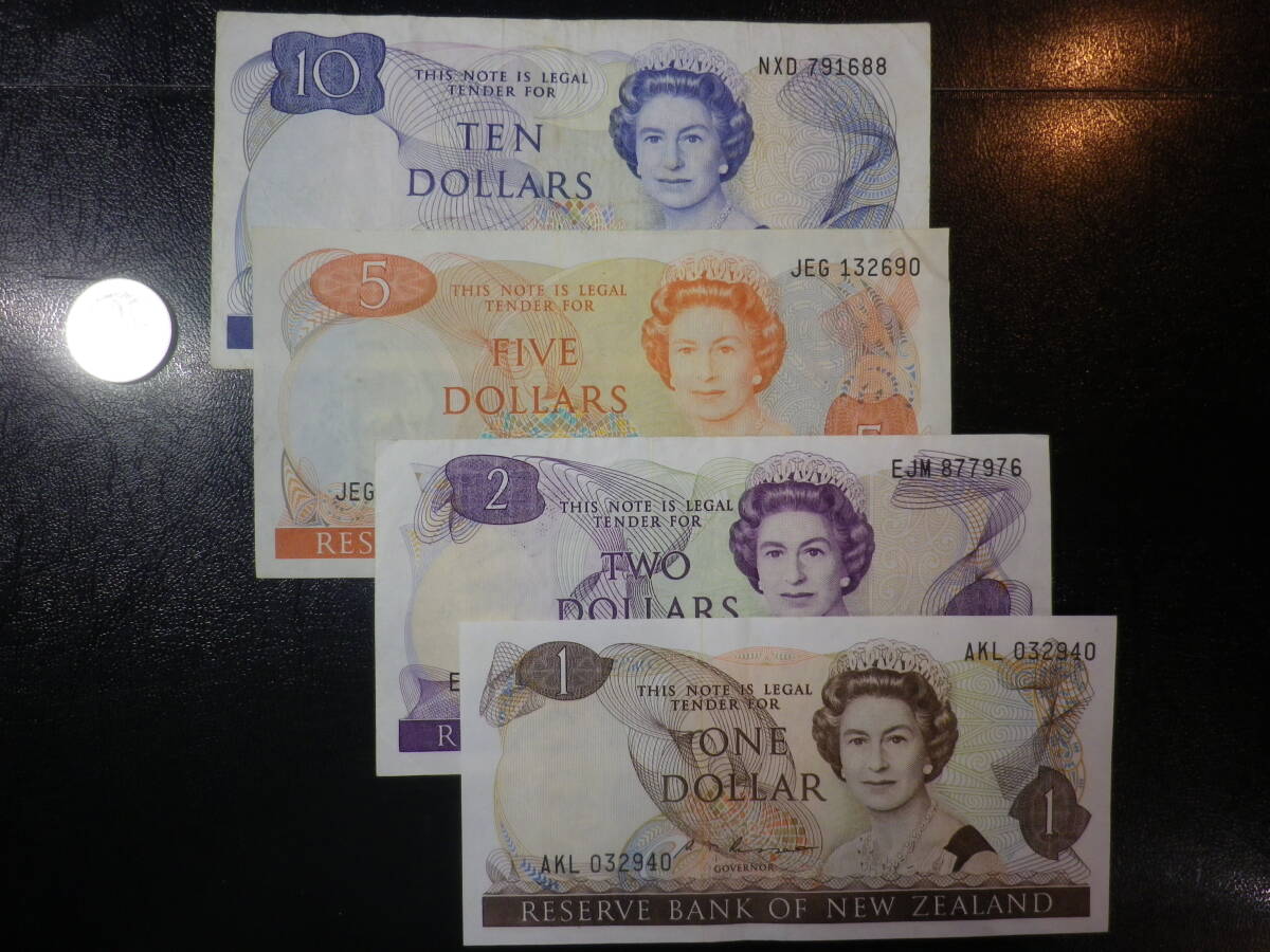 ニュージーランド 1981~1992年 1,2,5,10Dollars 4種4枚 並品~美品