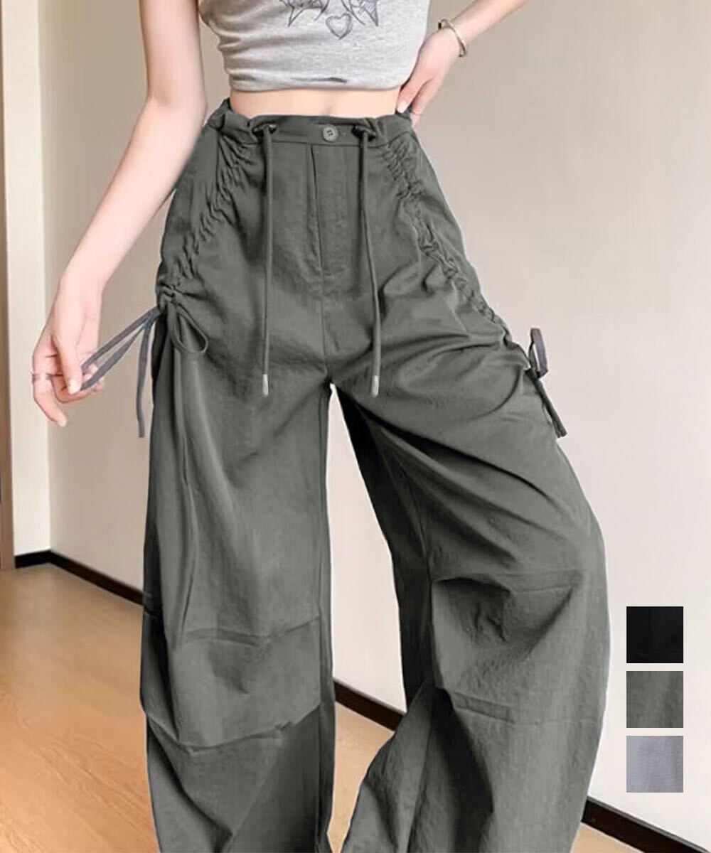 軽やかな穿き心地が魅力の薄手ワイドカーゴパンツです