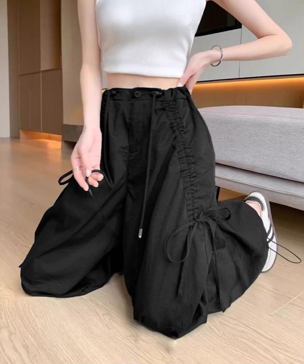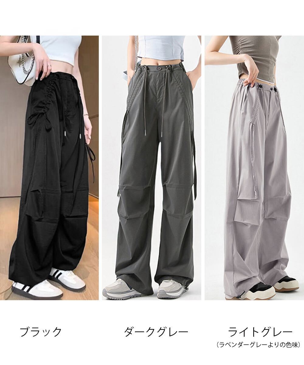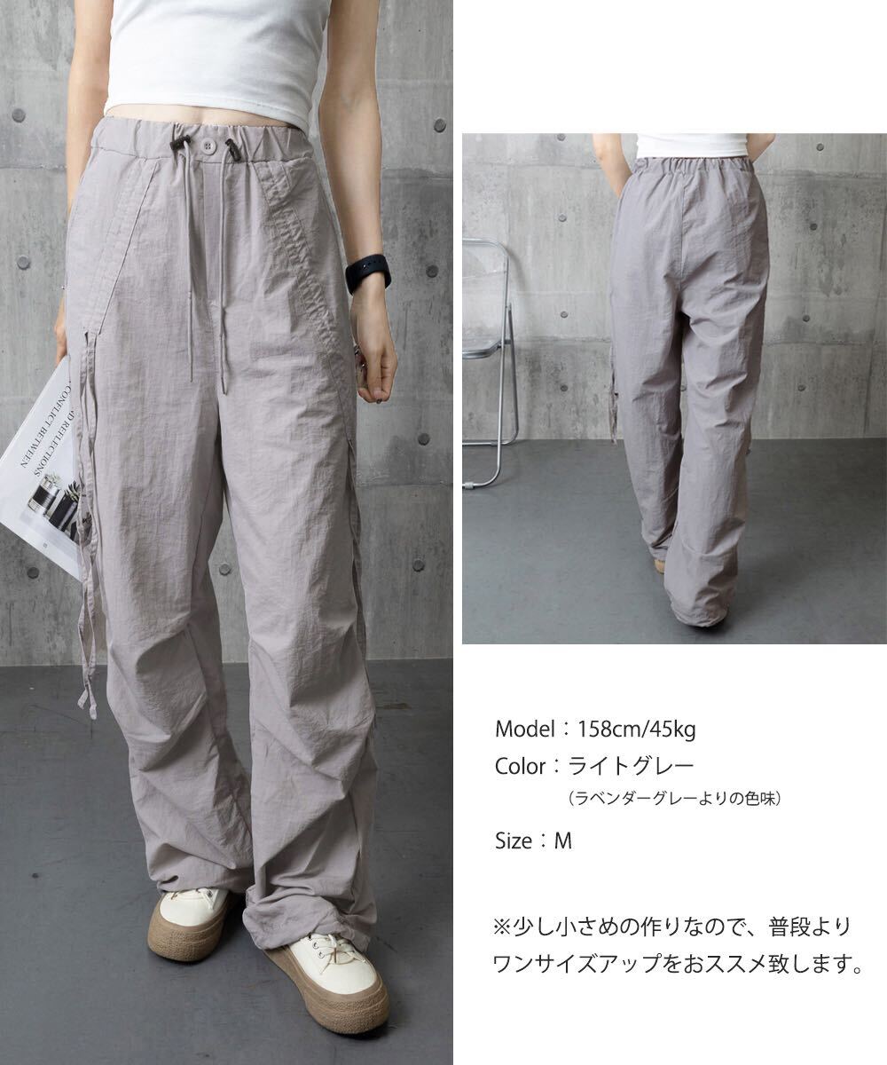 美脚脚長パンツ春夏/イージーパンツ薄手/サイドリボンパンツ