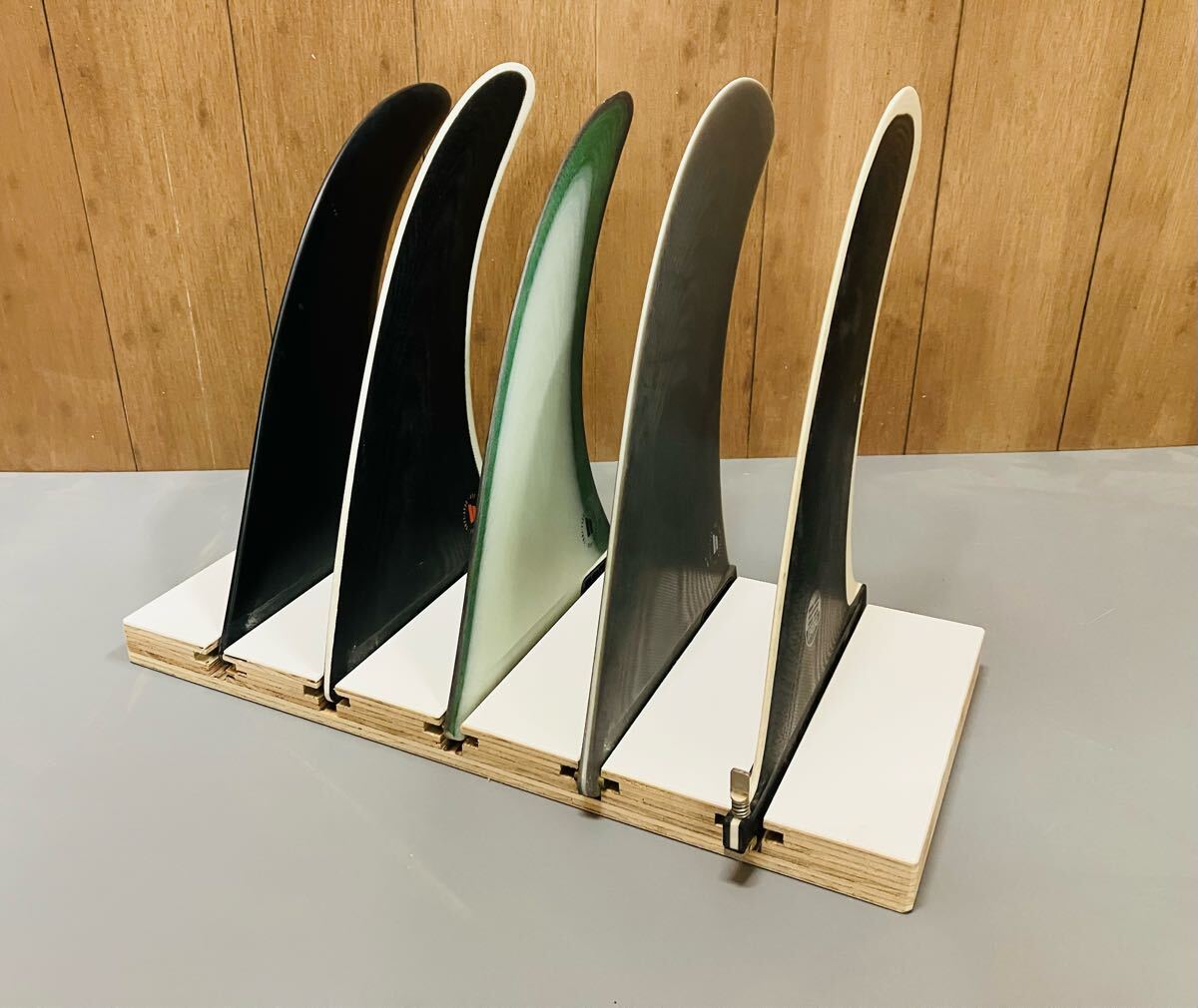 【Size:サイズ】 400X180X24mm (幅x奥行x高さ) 【Material:素材】 針葉樹合板(ラーチ合板)+樹脂貼り仕上げ 【Collar:色】 合板部分無塗装・調樹脂部分マットホワイト 商品説明: ショートボード~ロングボードのセンターフィンやサイドフィンのディスプレーや保管に便利なフィンスタンド。 ラーチ合板+樹脂貼り仕上げでオシャレで水にも強いです。 1枚~最大5枚のフィンをセットすることができます。 注)画像のフィンは付属しません。 レザー調にこだわった特注仕上げにつき一台限定になります。 ※木材を使用しておりますので一台一台の木目、色合い、質感が画像と異なる場合がございますのでご了承ください。 ※一部フィンの形状、仕様、サイズ、厚みにより使用できない場合がございますのでご了承ください。 ※ワンオフ、一点商品になりますので基本的に同じカラー、仕様での再製作はできません。ご興味を頂けたましたら早目のご購入をお願い致します。 【ハンドメイド・ワンオフについて】 素材に天然木、鋼材、特殊素材を使用しておりますので材料の性質上、節・小傷、色むら、色あせ、錆が入る場合がございます。 また、特殊な加工、形状をする際に小傷が付く場合がございます。 商品よってエイジング加工(さび加工)やハケ塗りハケ跡を残す場合がございますが 上記記載内容全て使用上に問題の無い商品の特徴、仕様としてご理解下さいませ。 |