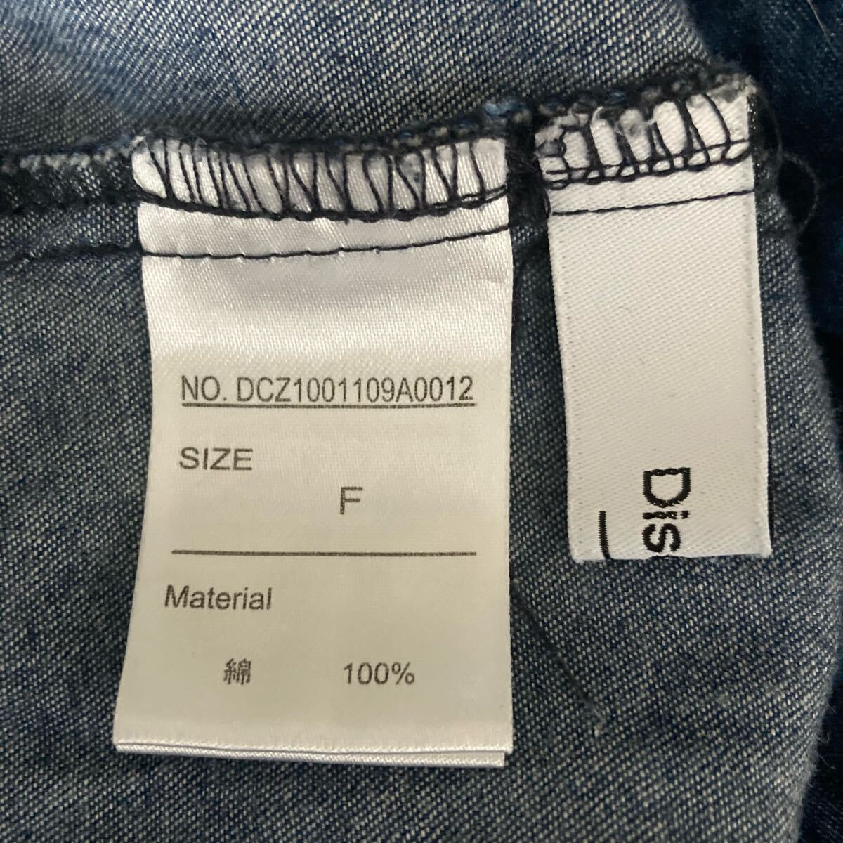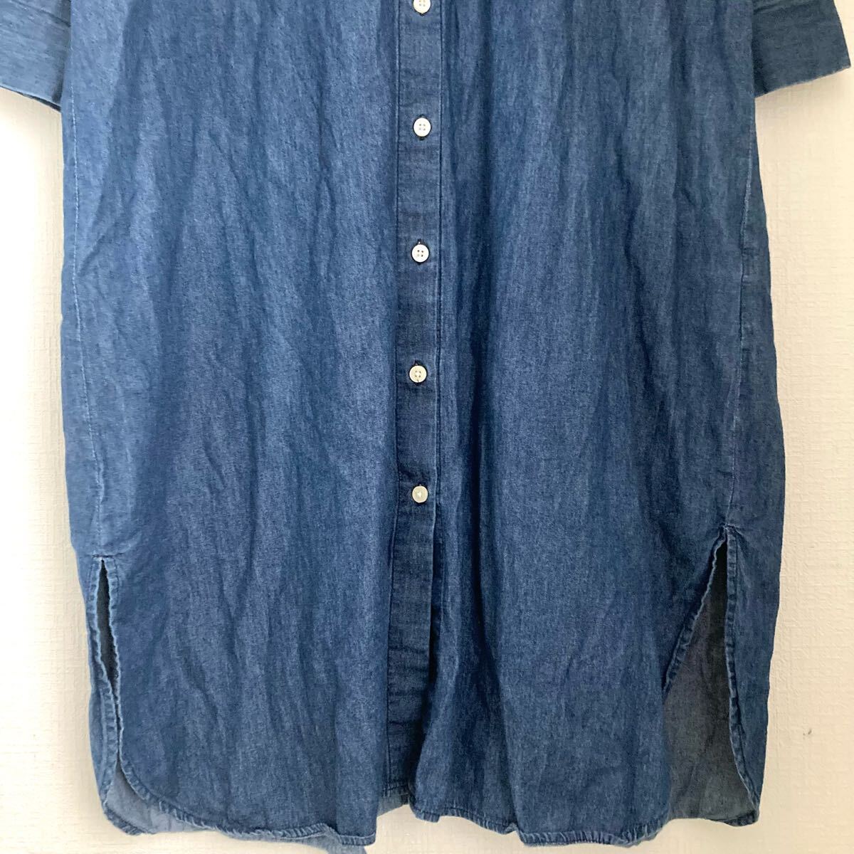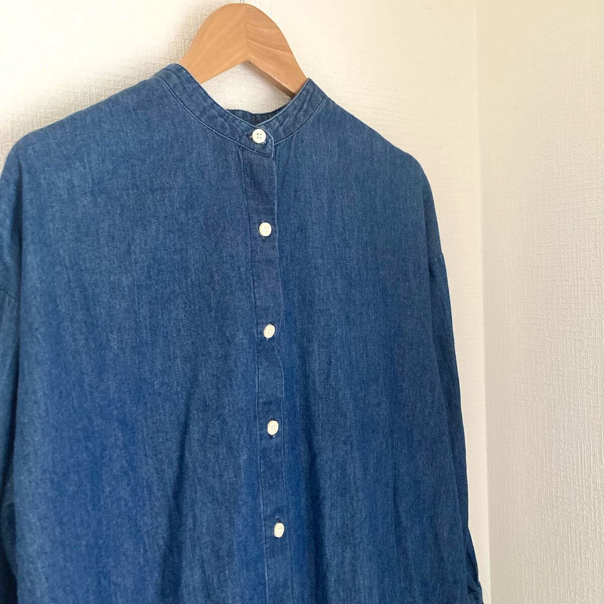 ディスコート デニム バンドカラー ロングワンピース ネイビー 無地 長袖 コットン ロングシーズン