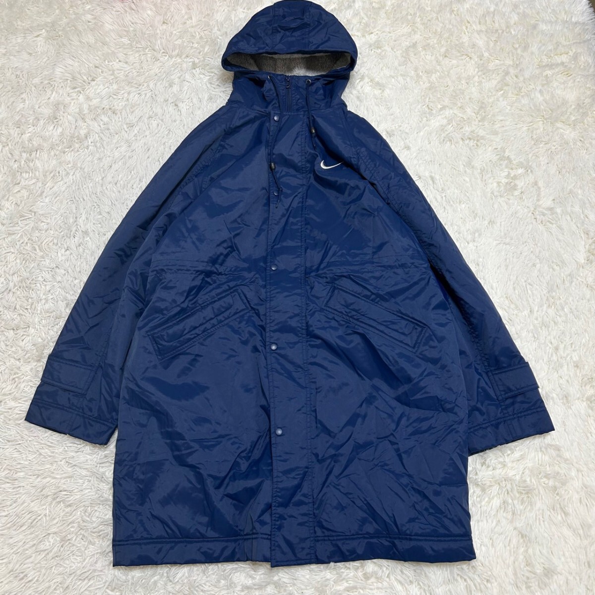 NIKE ナイキ ロングコート ジャンパー ロゴ刺繍 90s ネイビー サイズM