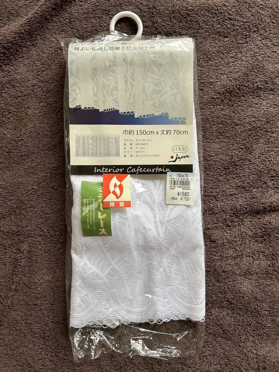 カフェカーテン シンプルなリーフ柄 程よい目隠し効果と防炎加工付 巾約150センチ×丈約70センチ