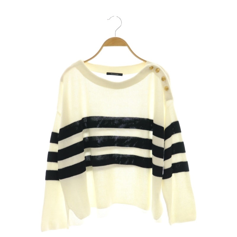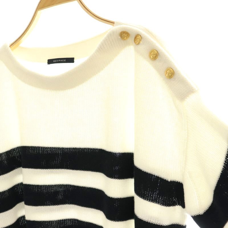 マカフィー MACPHEE トゥモローランド コードコットン ボートネックプルオーバー カットソー 長袖 S 白 ホワイト 黒