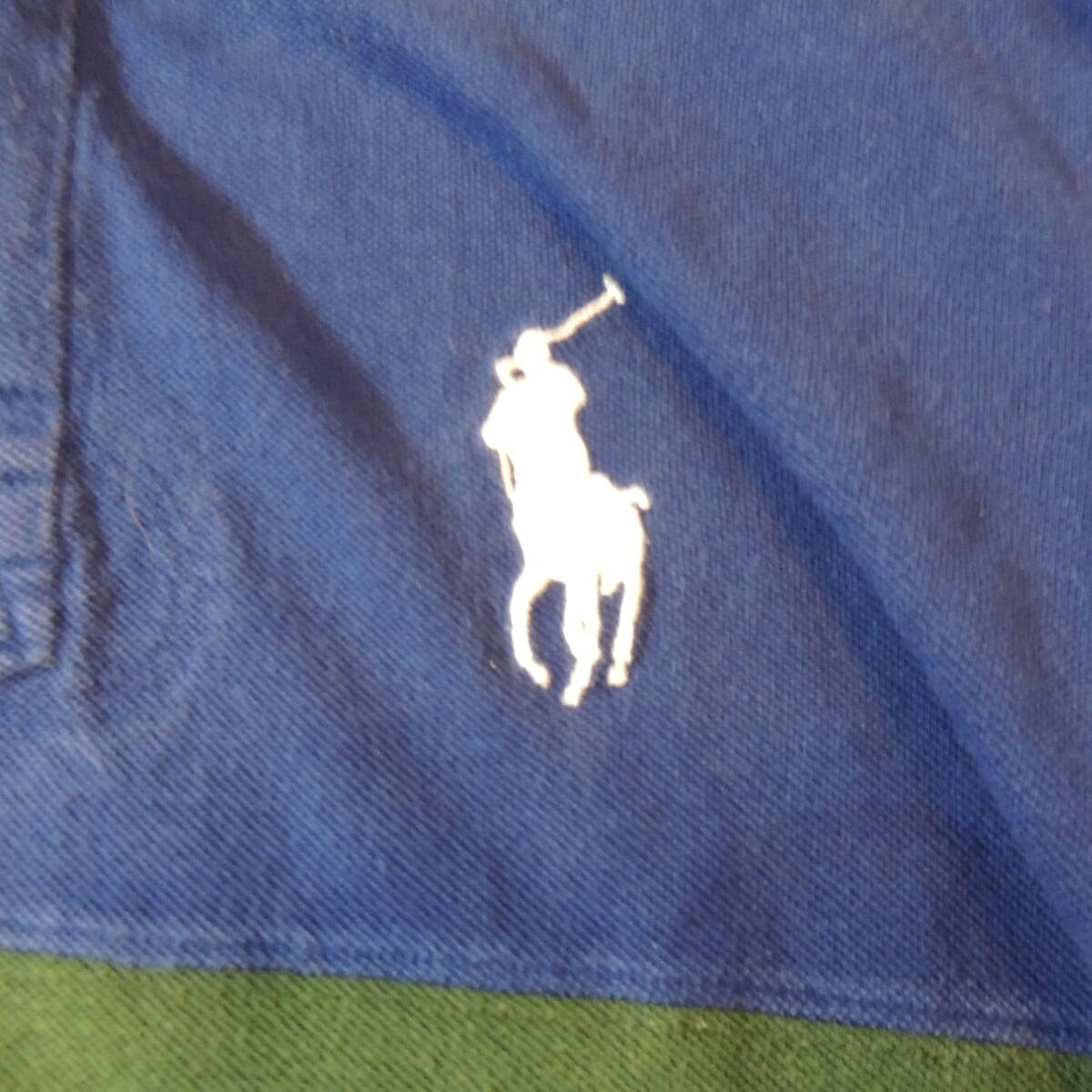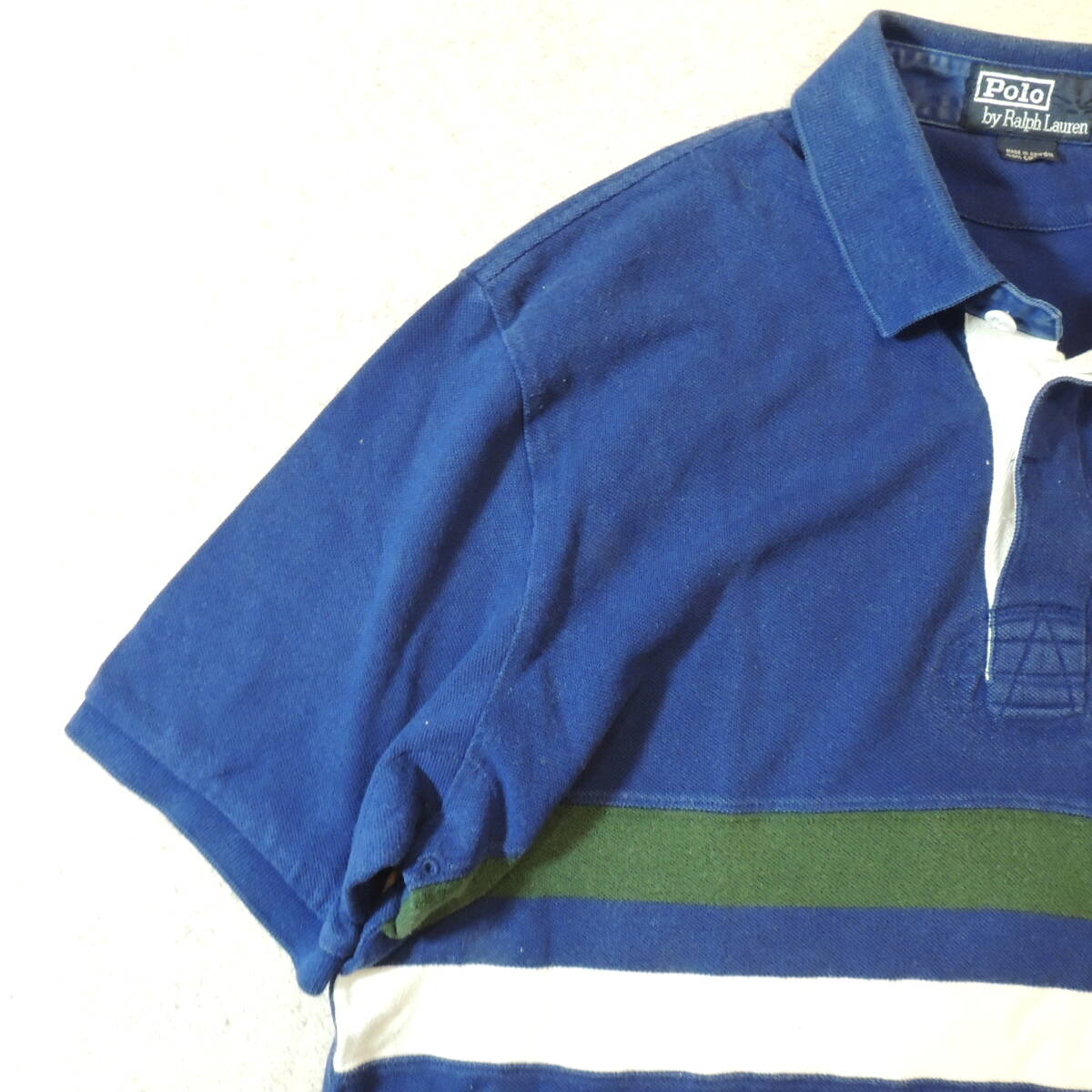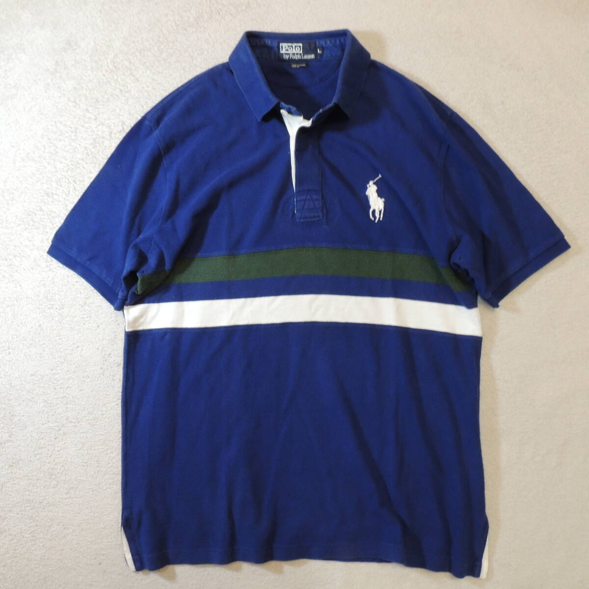 POLO by RALPH LAUREN ラルフローレン ビッグポニー 胸刺繍ロゴ ラインボーダー 鹿の子ポロシャツ カノコ 青 ブルー メンズL
