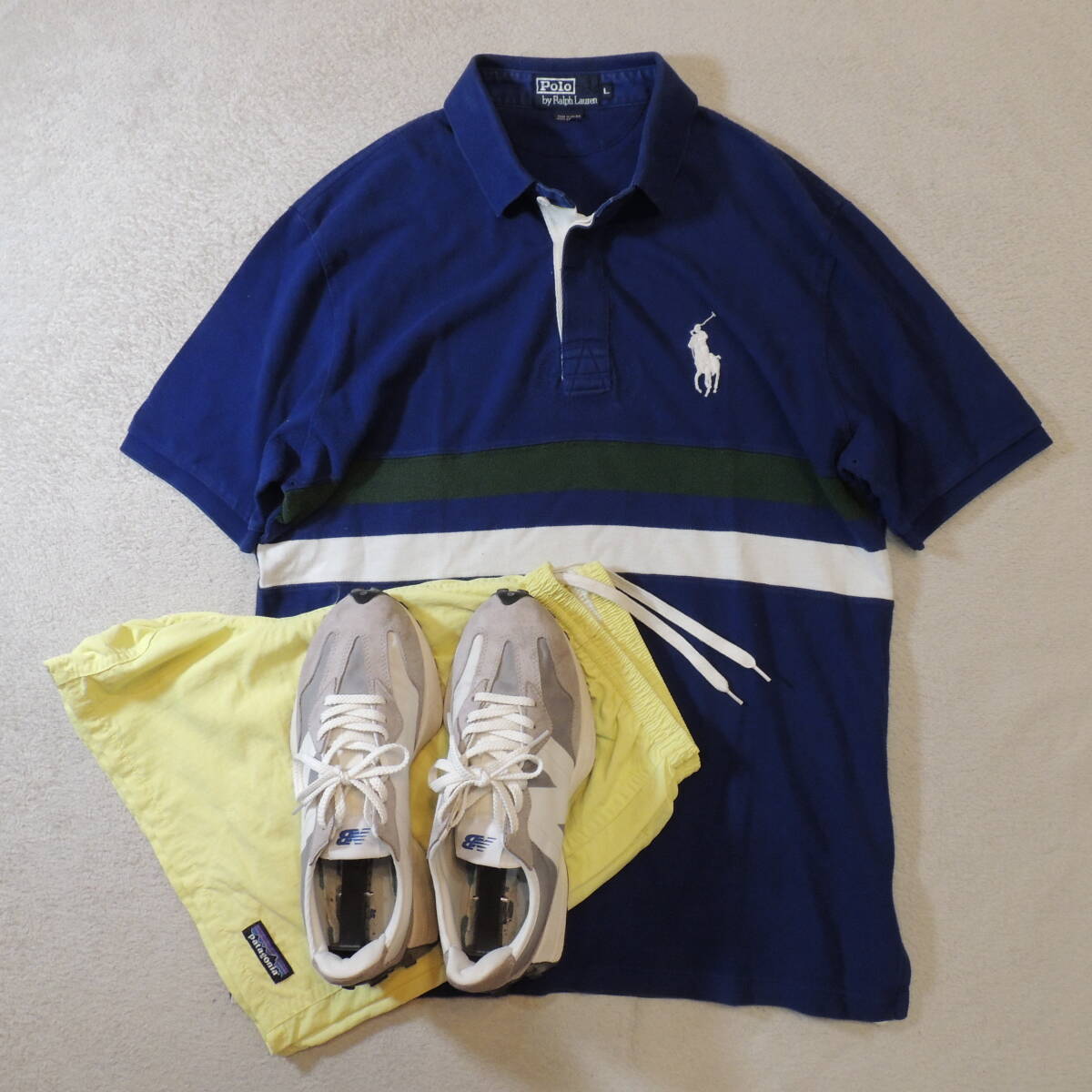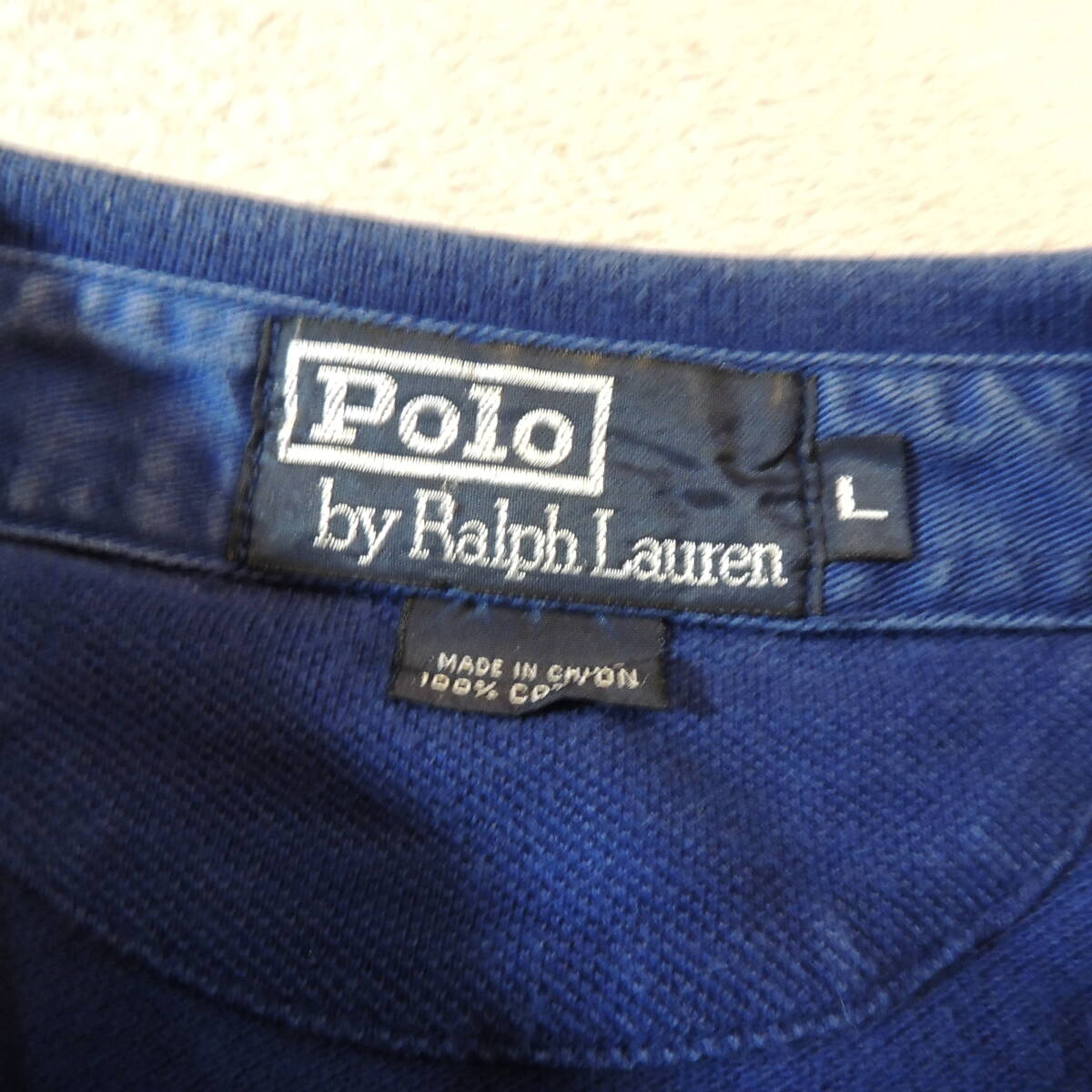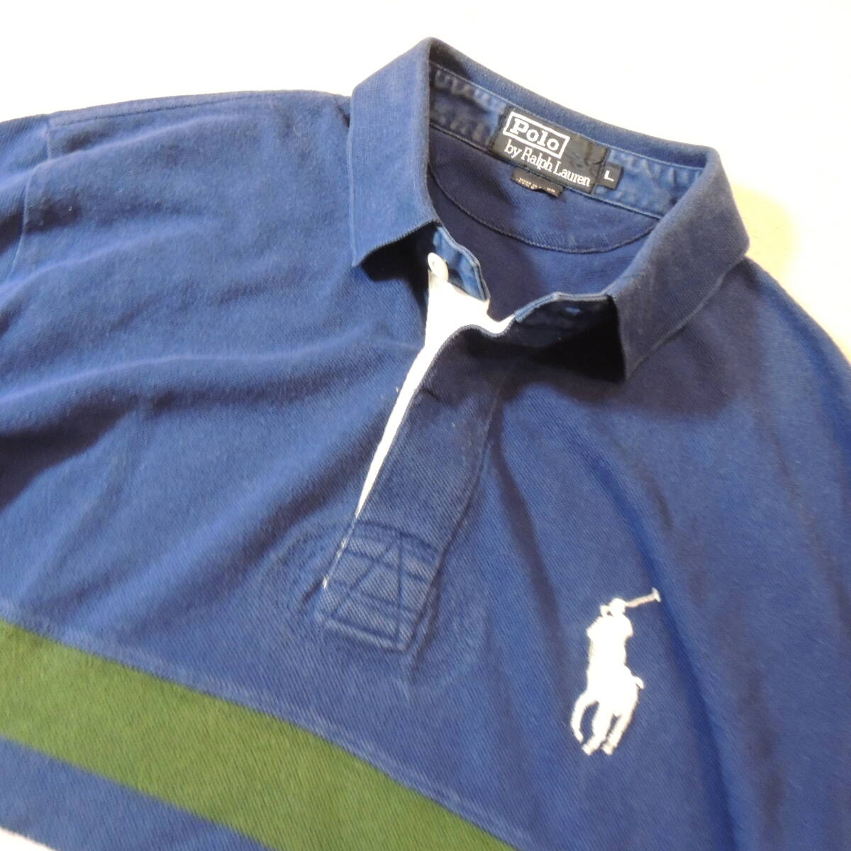 POLO by RALPH LAUREN ラルフローレン ビッグポニー 胸刺繍ロゴ ラインボーダー 鹿の子ポロシャツ カノコ 青 ブルー メンズL