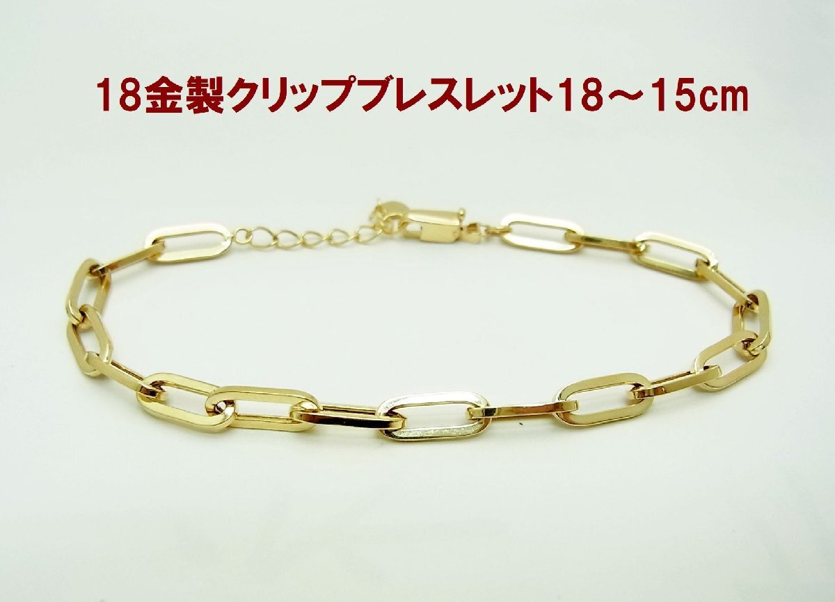 新タイプフックではめ外しノンストレス 18金製 クリップ ブレスレット 18~15cm 卸価格 商品動画あり 送料込み