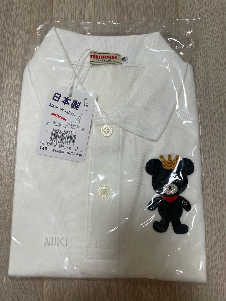 新品タグ付 ミキハウス mikihouse 140 白半袖ポロシャツ 男の子です。