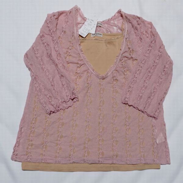 Last 3L 華やか透し織 トップス&キャミソール ピンク×ベージュ 大きいサイズ