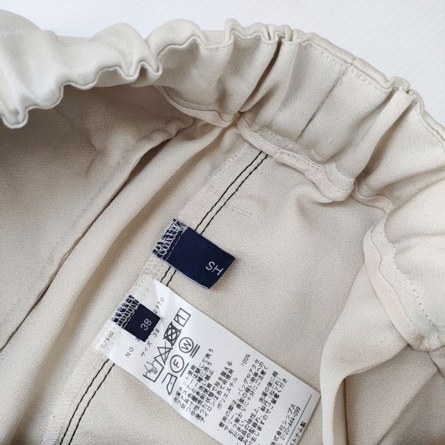 | 仕様 | フロント:なし ポケット:あり 透け感:ややあり 裾:ロックステッチ ウエスト調整:ゴム(紐なし) 裏地:なし |