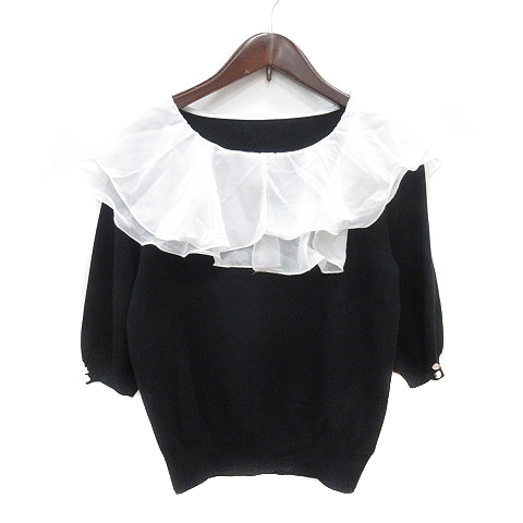 イング INGNI ニット セーター 長袖 フリル M 黒 ブラック /MN ●RY レディース