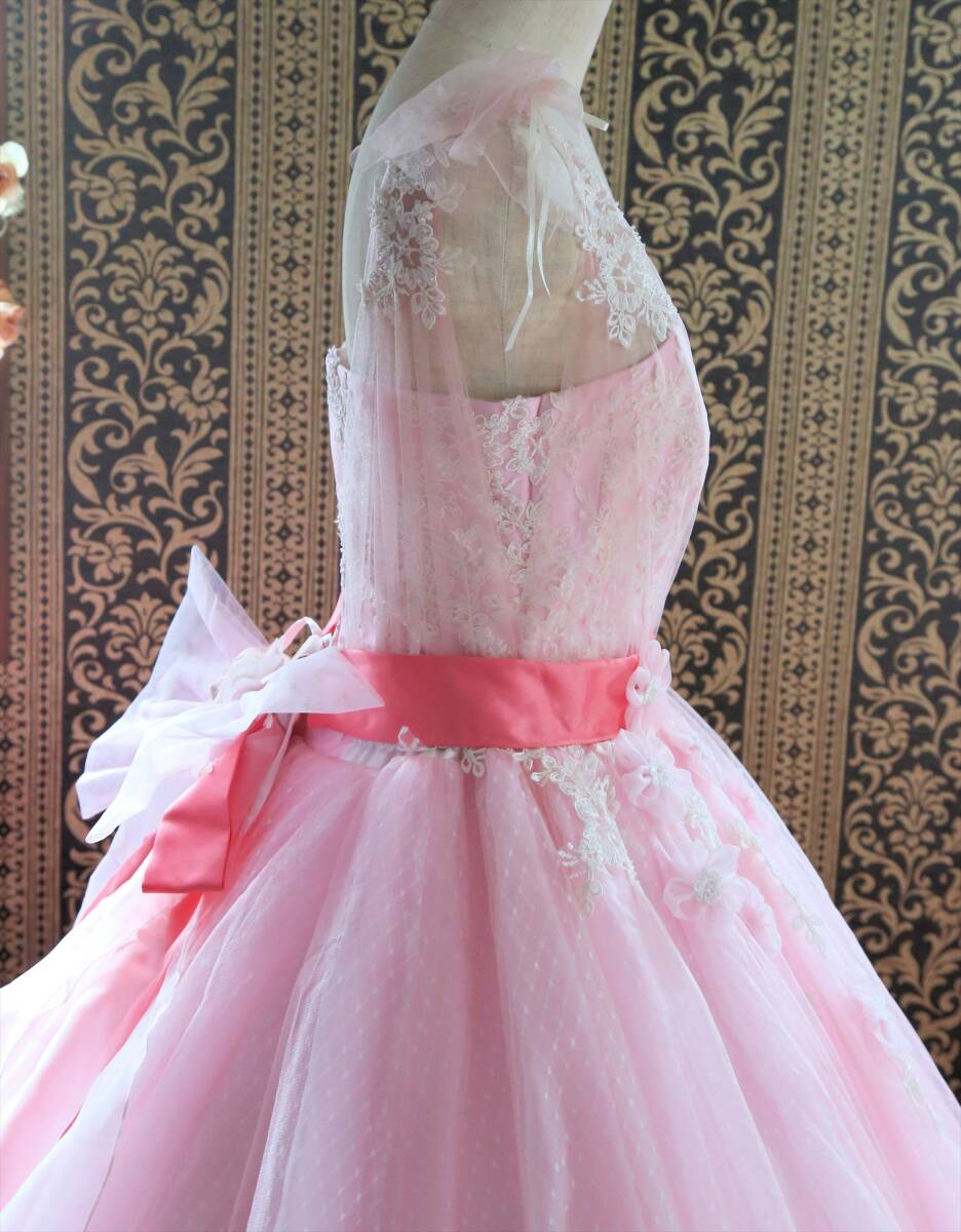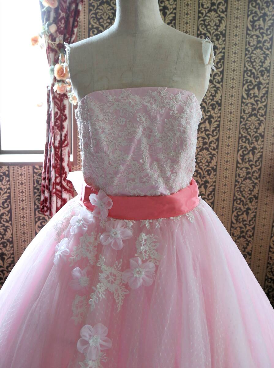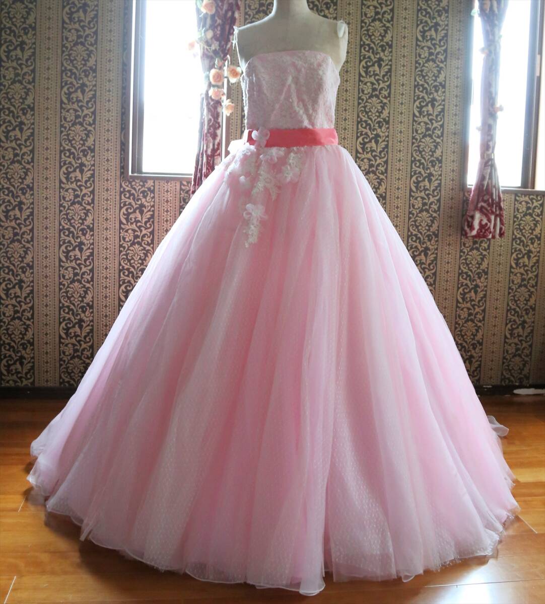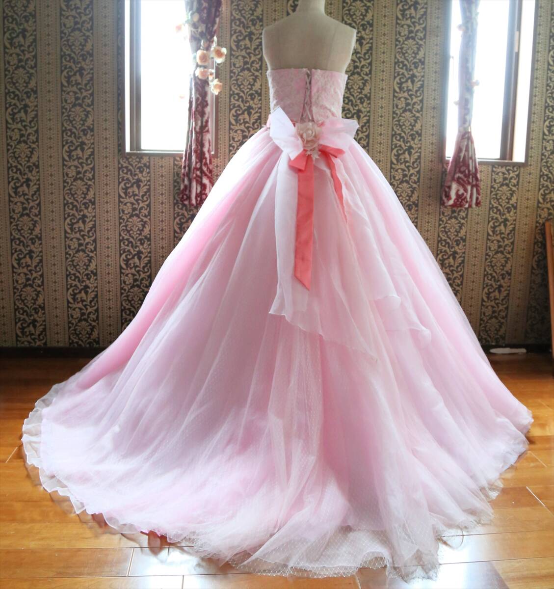 2WAYデザイン高級ウエディングドレス11号13号15号L~3Lサイズ大きいサイズ編上げ調節可能ピンクカラードレス
