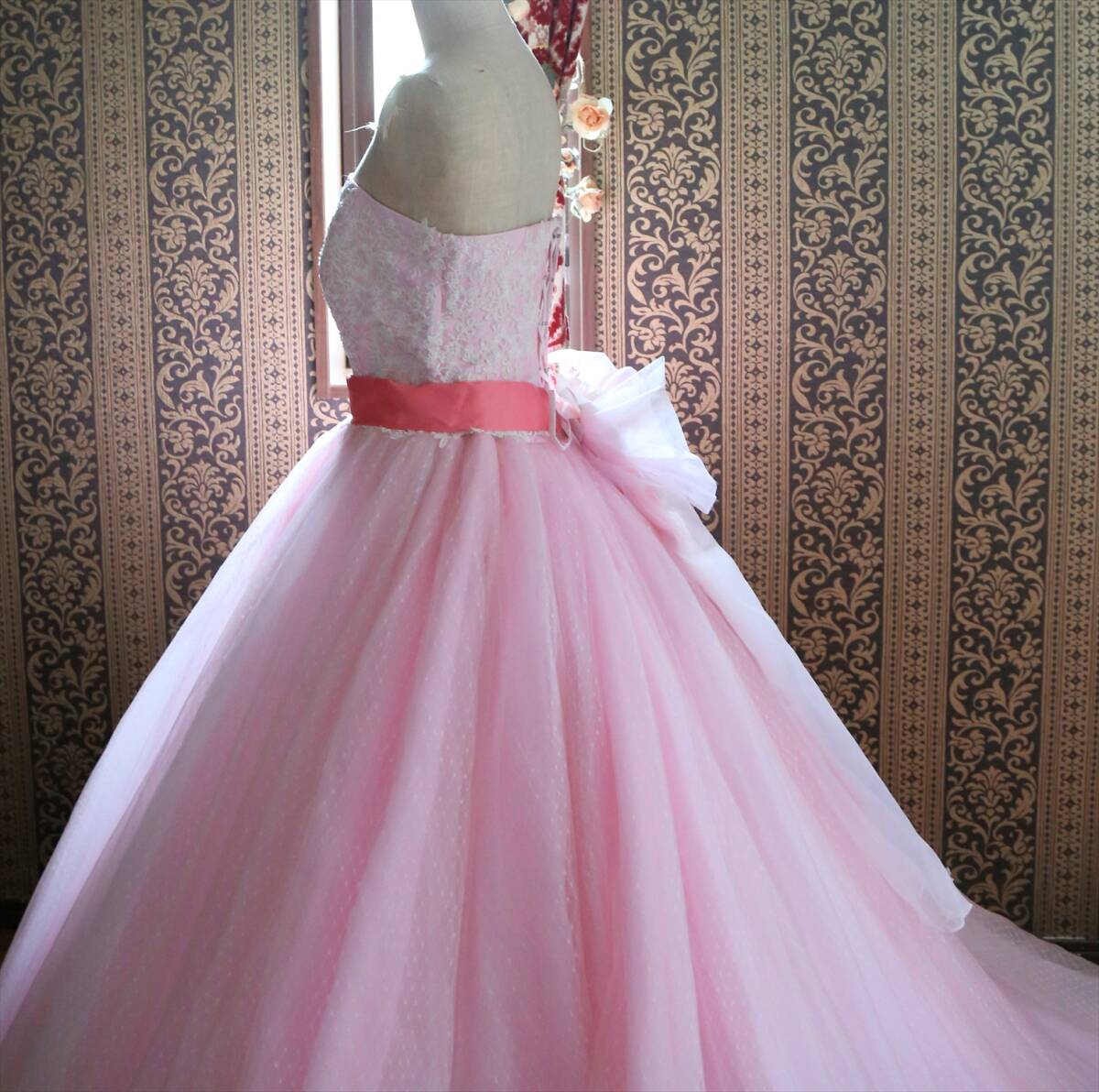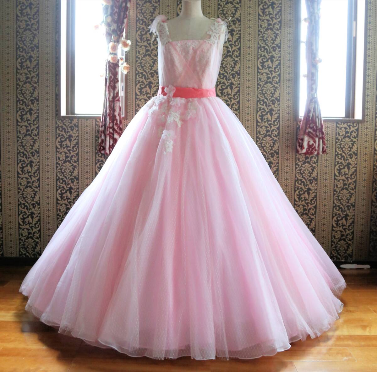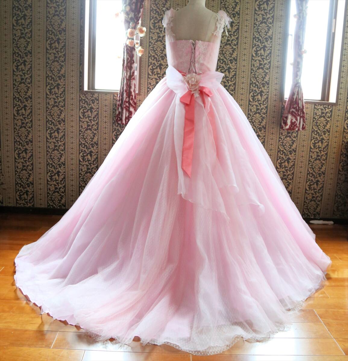 2WAYデザイン高級ウエディングドレス11号13号15号L~3Lサイズ大きいサイズ編上げ調節可能ピンクカラードレス