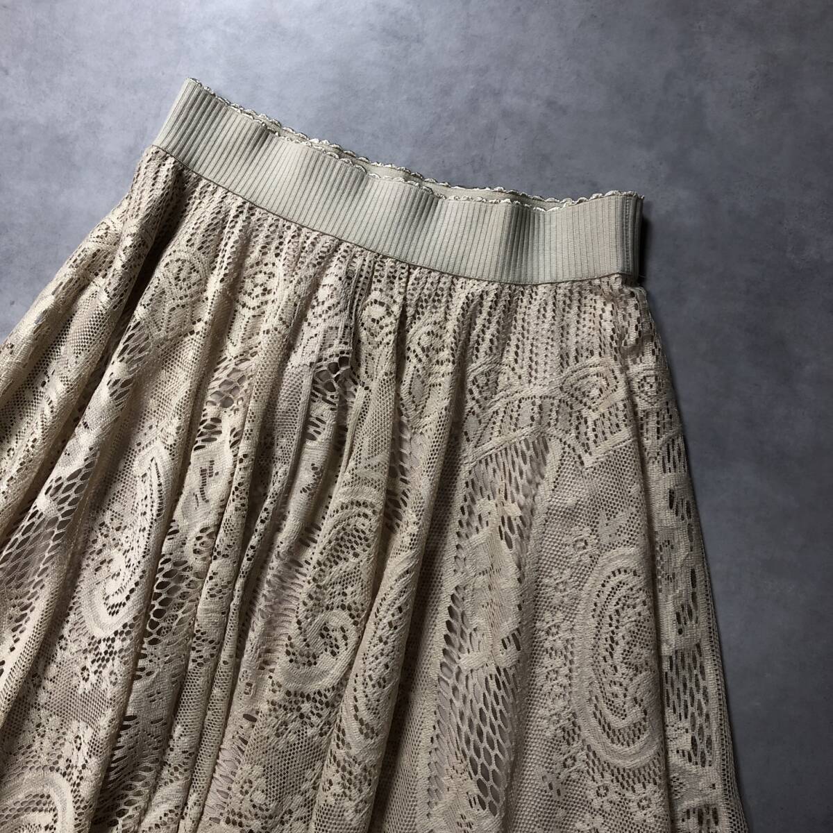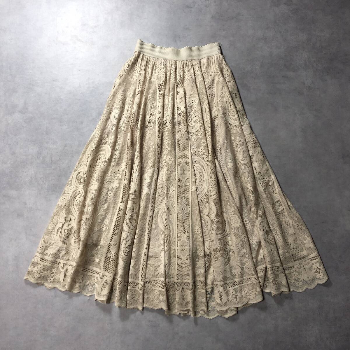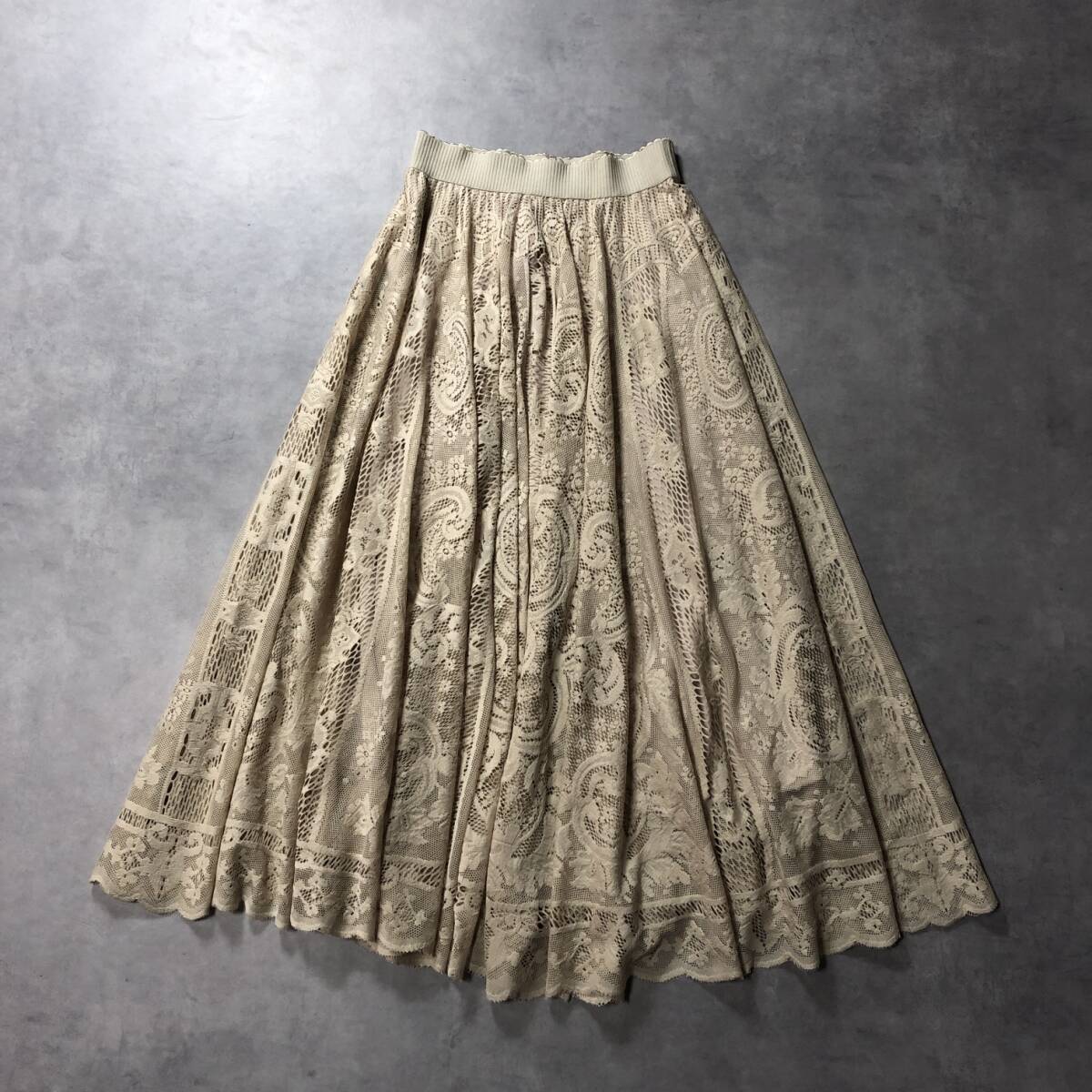 商品名 :WQ399●Eimee Law:総レースフレアロングスカート ●38● ベージュ エイミーロウ