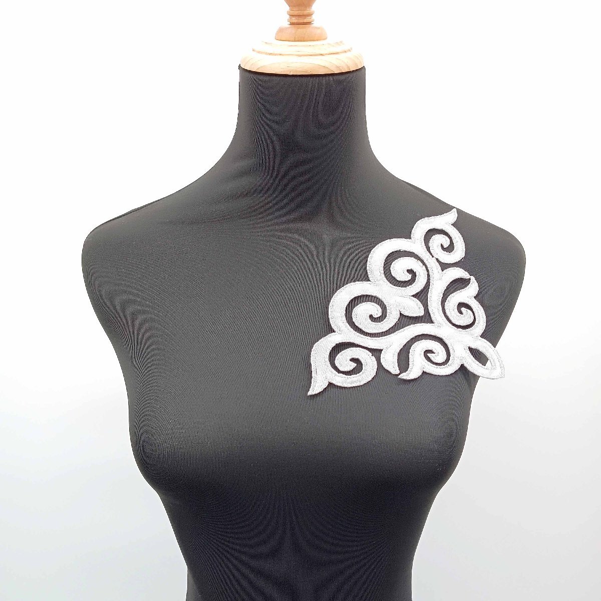AZ476シルバー アイロン接着 花柄モチーフレース 襟レース  刺繍  新体操 衣装 社交ダンス フィギュア レオタード衣装