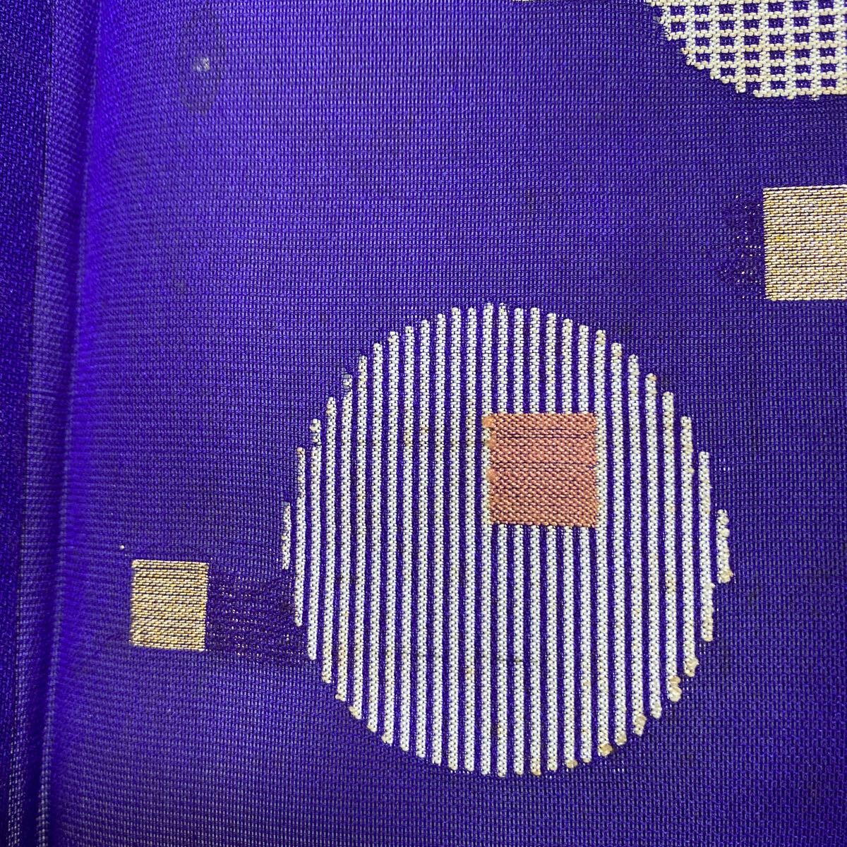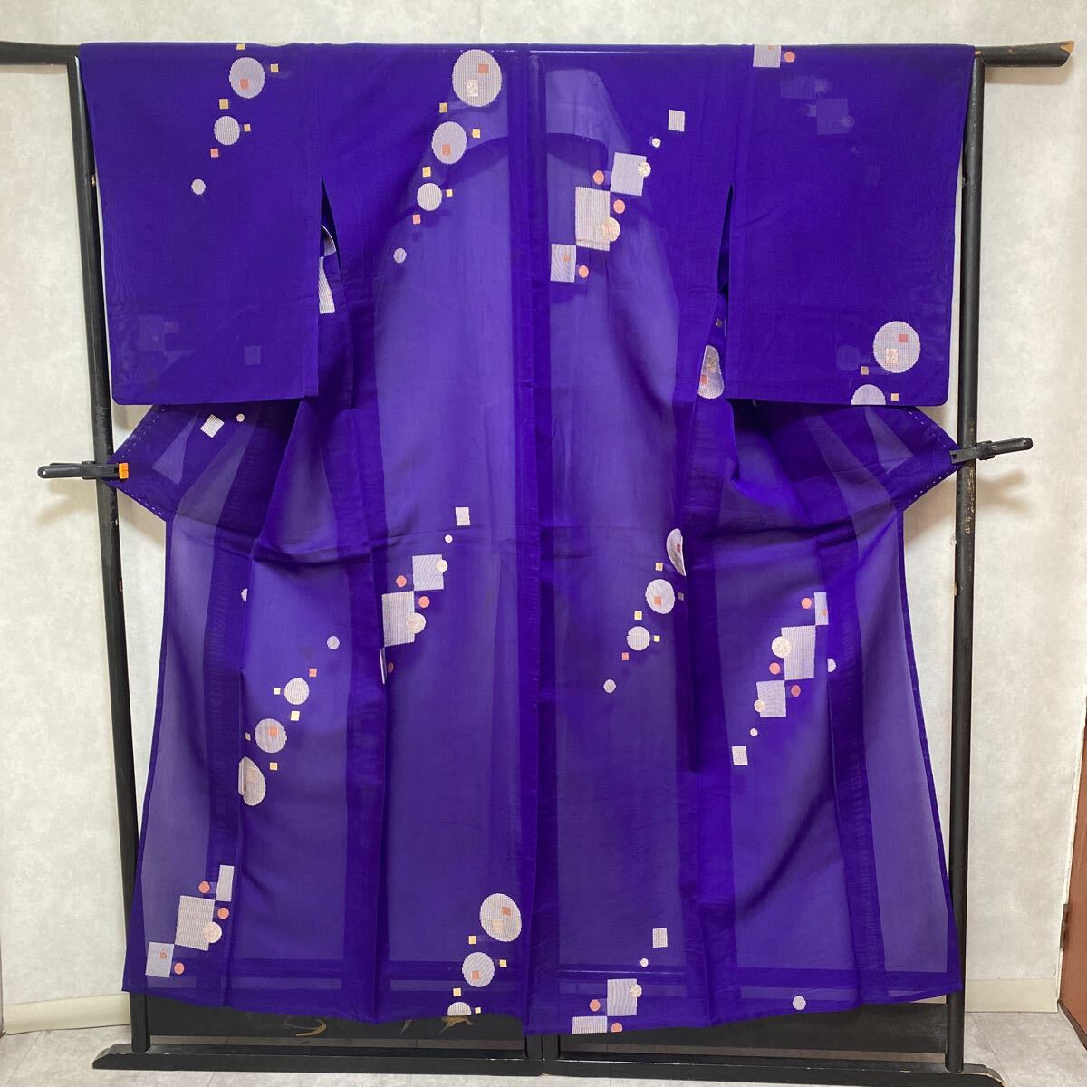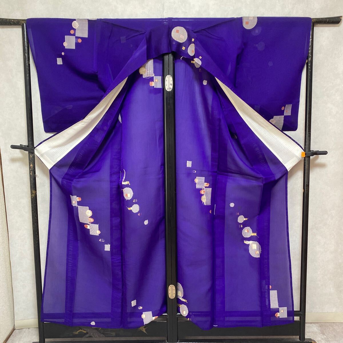 アンティーク 単衣 絽 紗 夏物 着物 正絹 昭和レトロ 大正ロマン モダン 和洋折衷コーデ リメイク 青紫 縫取り 銀糸 ラメ か11-19w