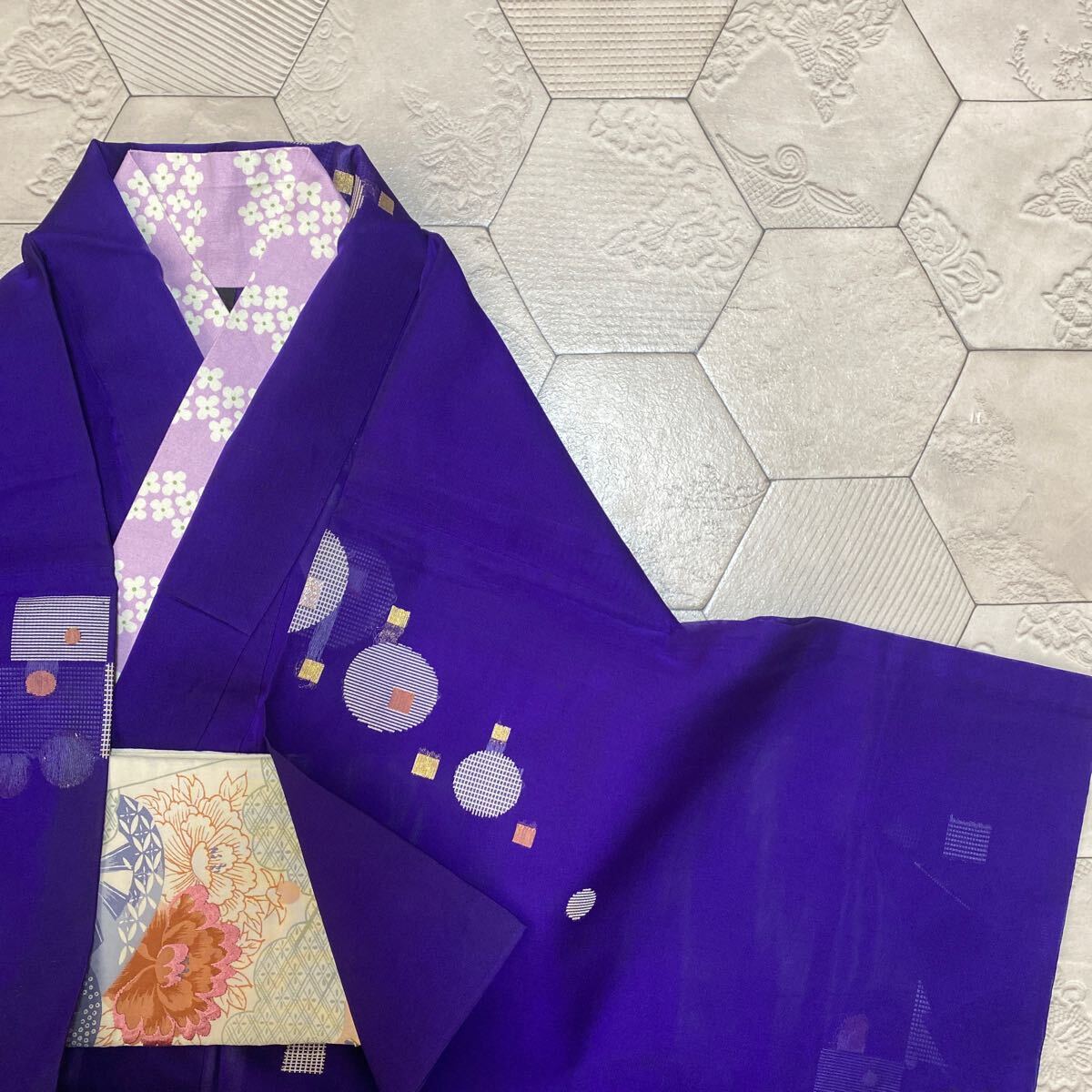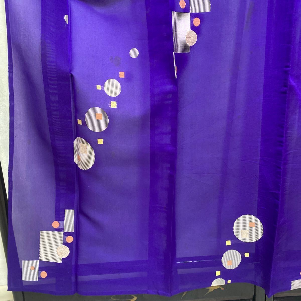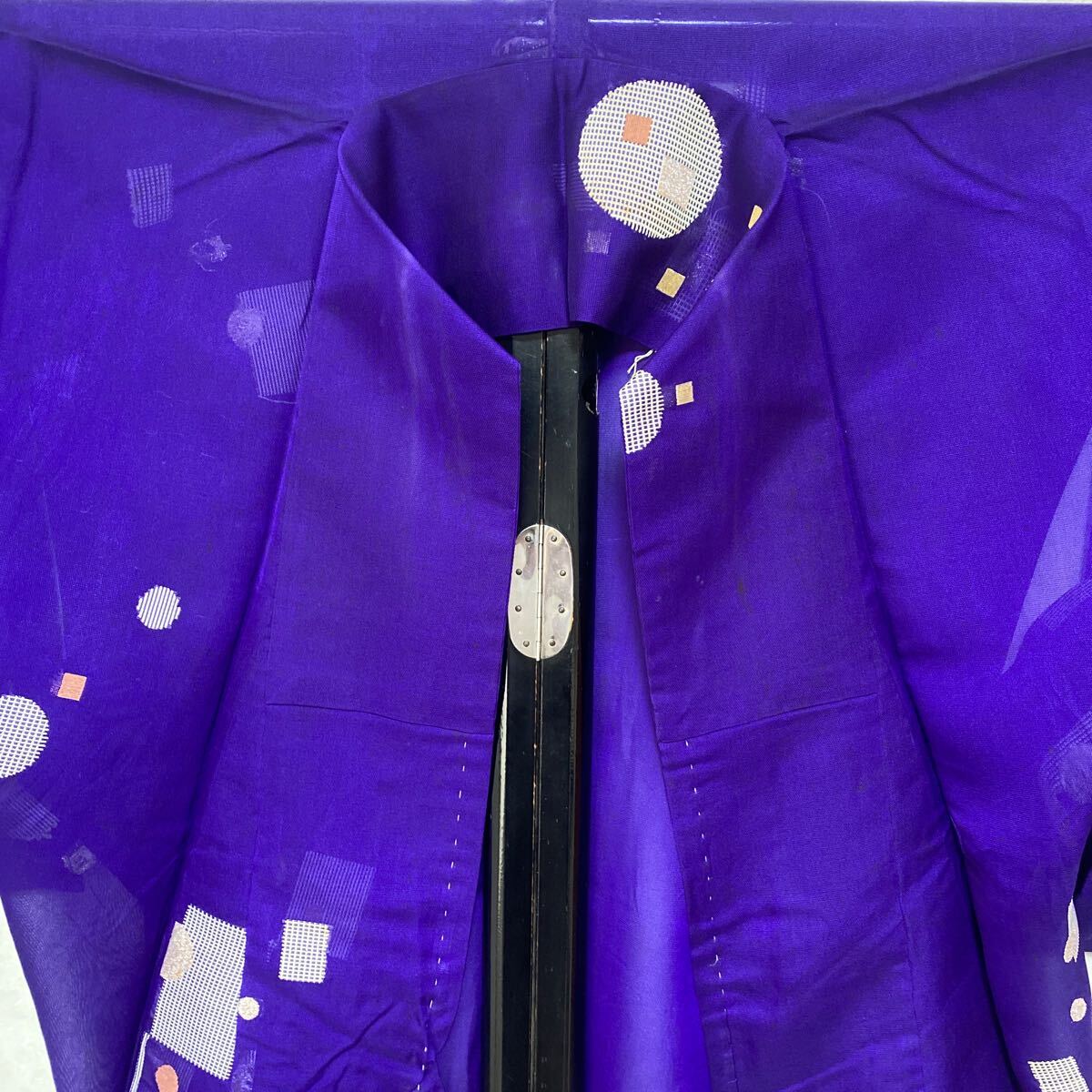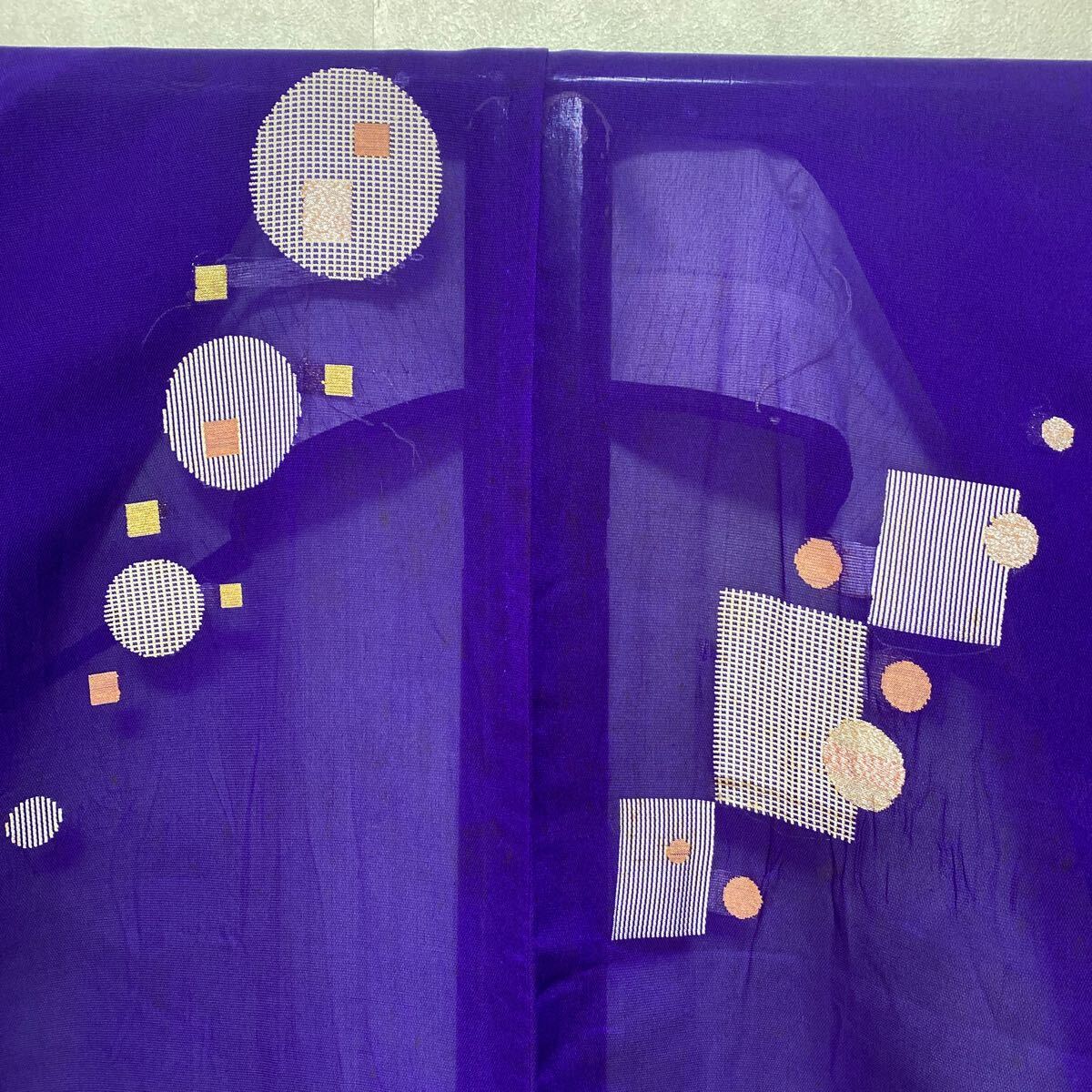 アンティーク 単衣 絽 紗 夏物 着物 正絹 昭和レトロ 大正ロマン モダン 和洋折衷コーデ リメイク 青紫 縫取り 銀糸 ラメ か11-19w