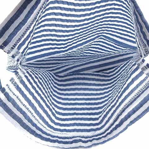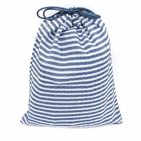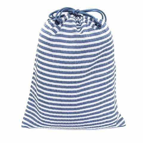 ノーブランド 巾着 ポーチ ボーダー コットン 青 ブルー 白 ホワイト /YK ●RY レディース