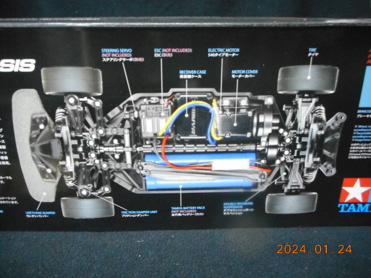 ●全長457mm、全幅204mm、全高136mm ●ホイールベース251mm ●タイヤ幅/径=フロント27/67mm、リヤ32/67mm ●フレーム=船底形状バスタブタイプ ●駆動方式=縦置きモーター・シャフトドライブ4WD ●デフギヤ=前後とも樹脂製4ベベルタイプ ●ステアリング=3分割タイロッド式 ●サスペンション=4輪ダブルウィッシュボーン ●ダンパー=前後ともフリクション ●ギヤ比=キット標準8.27:1(別売のピニオンと組み合わせて11.38:1~7.28:1までの10種類のギヤ比が選択可能) ●モーター=540タイプ ●スピードコントローラー=ESC仕様(別売)