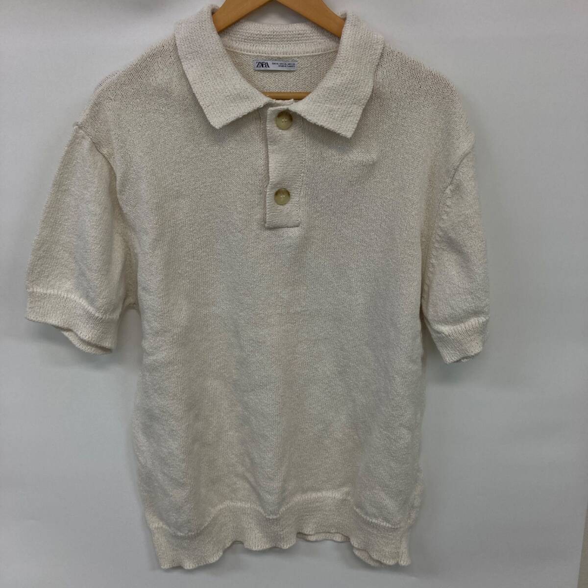 ZARA ザラ トップス 半袖 ポロシャツ ホワイト メンズ レディース XLサイズ【CT1118】