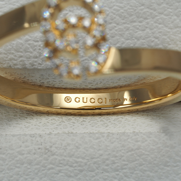 アイコニックな ダブルG のロゴを重ね合わせた グッチのGGランニングリング。こちらは厳選ダイヤの輝きを美しく飾ったダイヤモンドリングです。 |