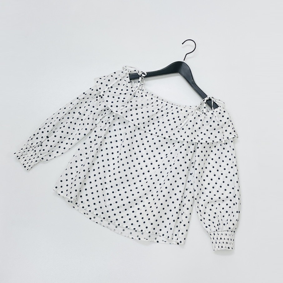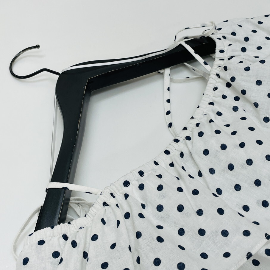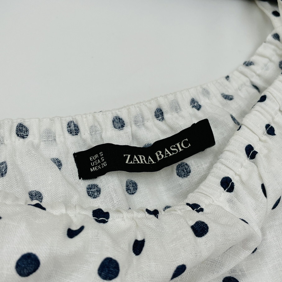 ZARA【S】オフショルダーブラウス 長袖トップス リボン レディース カジュアル ブラックタグ フェミニン大人可愛い生地コットンリネン ザラ