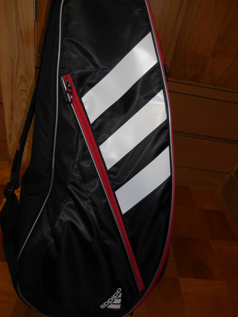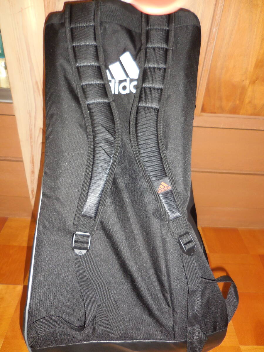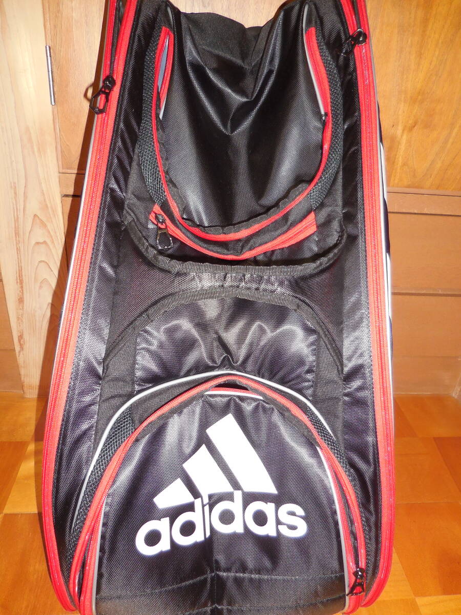 海外販売のアディダスのテニスラケットバッグ 貴重品で今は販売されていません サイズは37×78×34の大容量です 画像5は下部のポケット、画像6は上部のポケット ラケットは両サイドに入れられサーモ機能になっています(画像7,8) それぞれに2~3本のラケットが入ります ポケットの数も多く、遠征にも活躍しそうです |