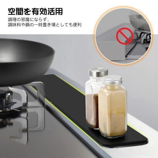 【空間を有効活用】ガスコンロ カバーは薄型設計なので、調理の邪魔にならず、調味料、ボウルや鍋の一時置き場としても便利です。 両面とも置けますが、主に平らな面が上になります。