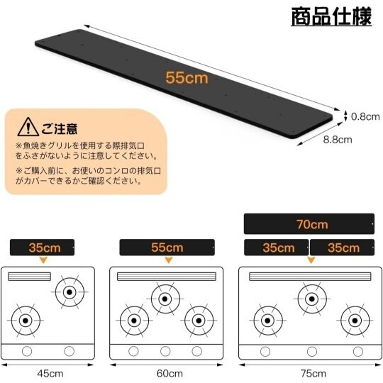 魚焼きグリルを使用する際排気口をふさがないように注意してください。 ご購入前に、お使いのコンロの排気口がカバーできるかご確認ください。