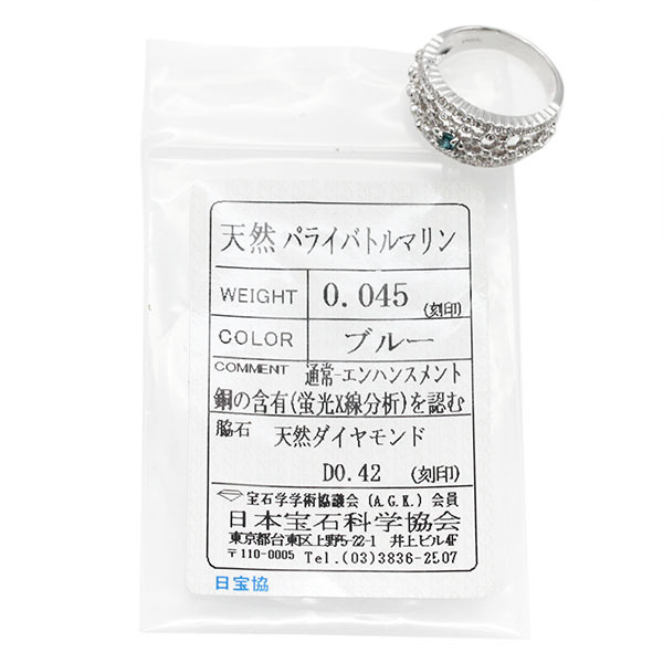 プラチナ パライバトルマリン ダイヤモンド リング 12号 PT0.045ct D0.42ct Pt900 宝石 アクセサリー 指輪 女性 レディース プレゼント