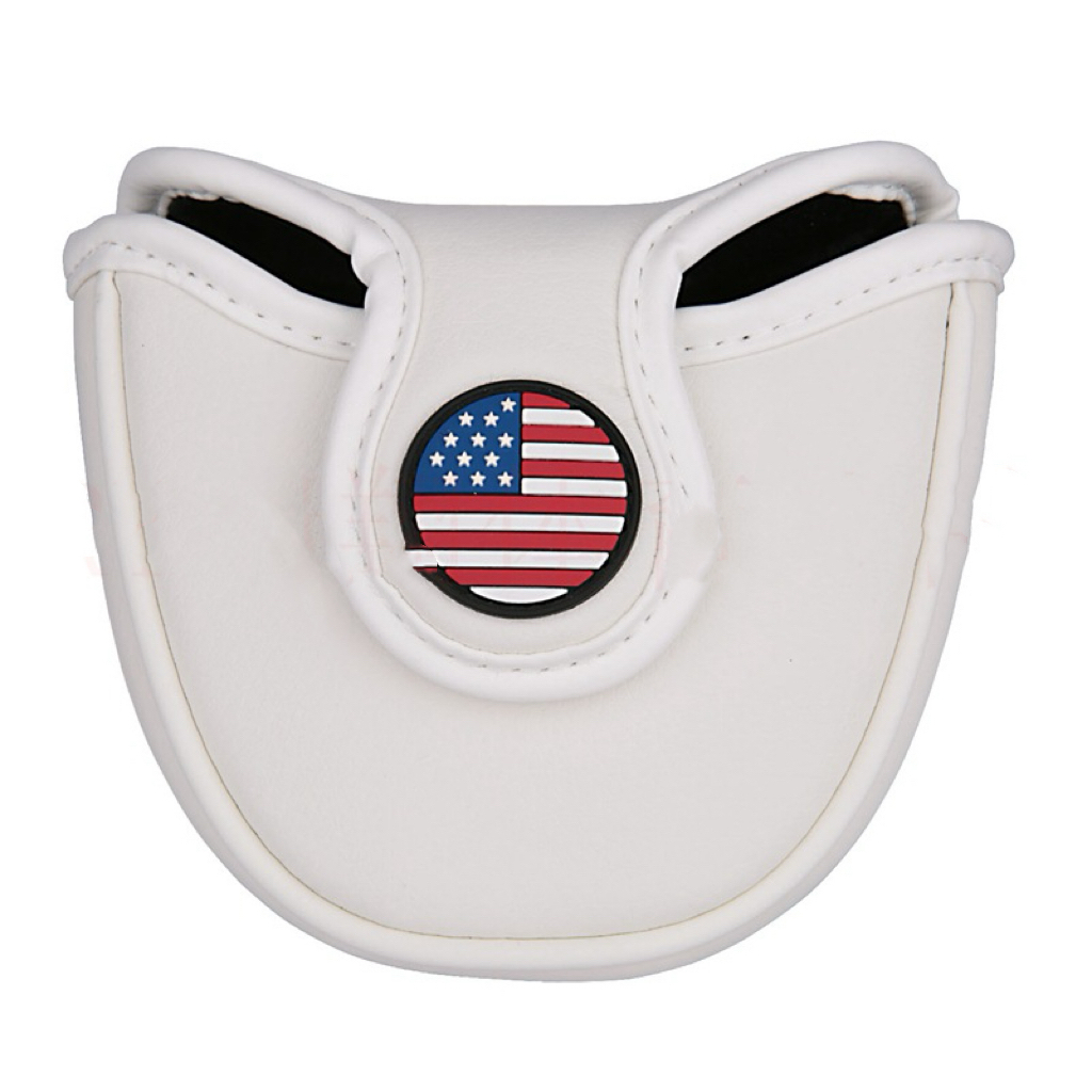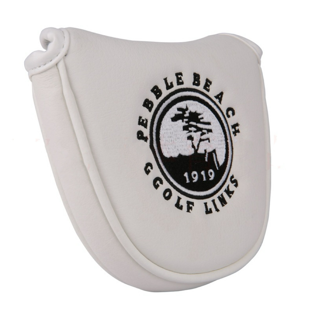 ゴルフヘッドカバー・ パターカバー(マレット型) オデッセイ 2ボール 対応 半円型 刺繍 樹 白色