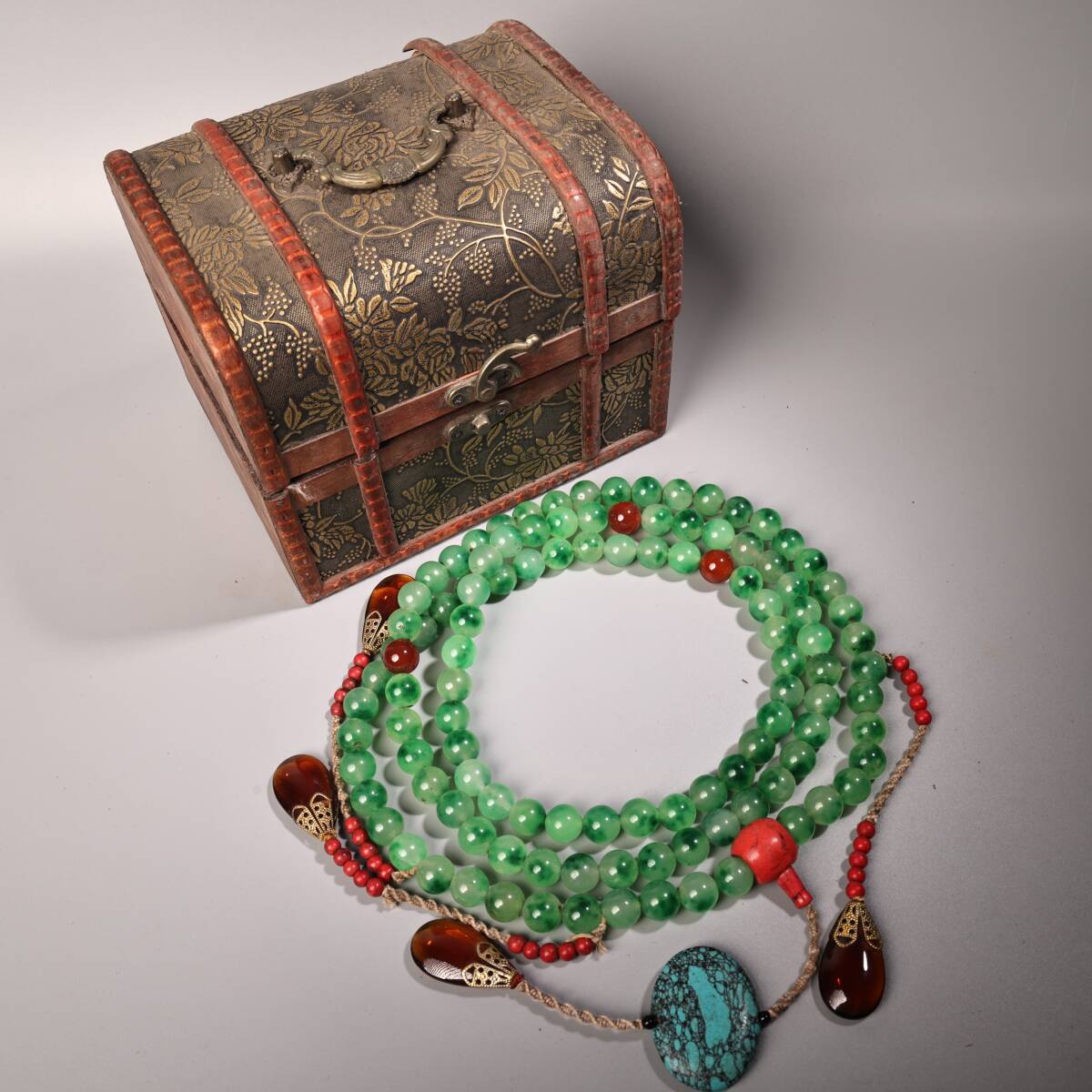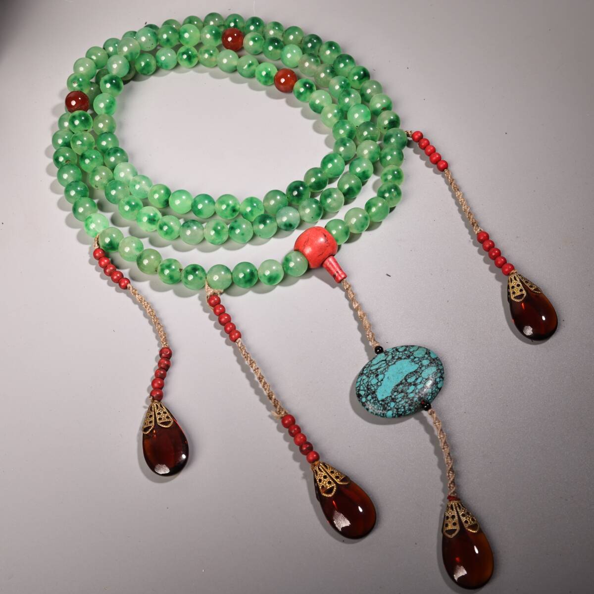 唐物 清代 翠玉朝珠108粒仏珠一条 古美術品 時代物 中国古玩 骨董品 D66