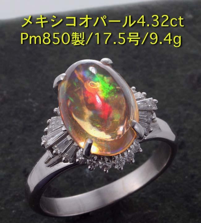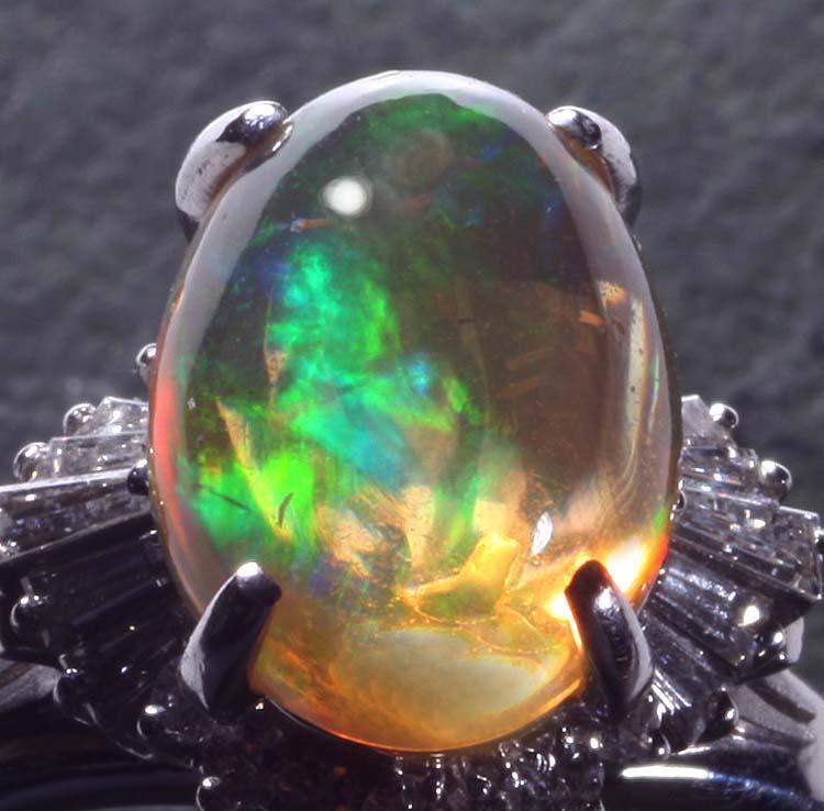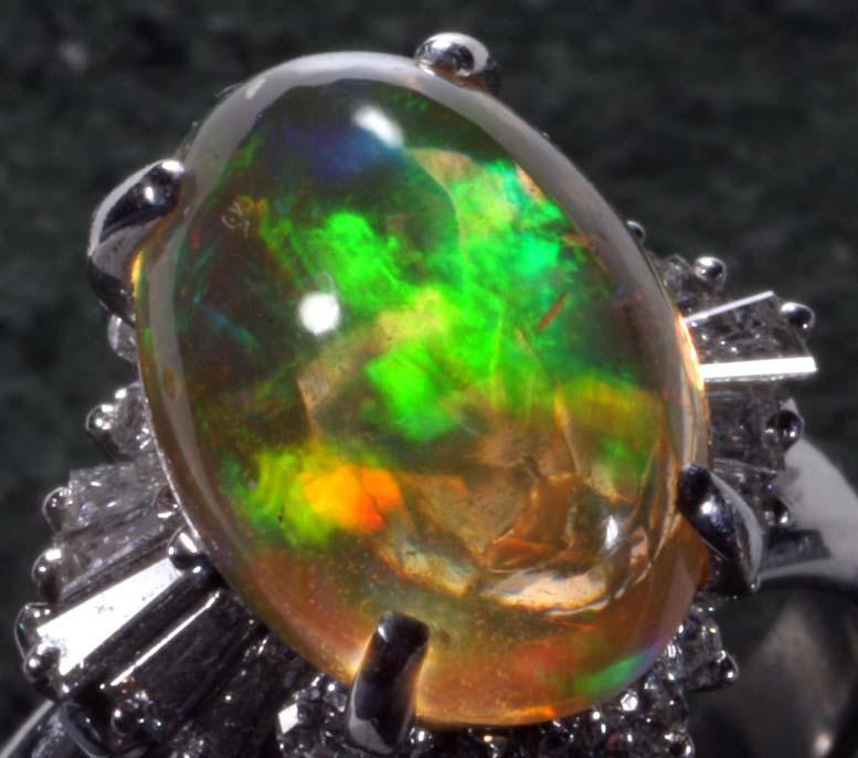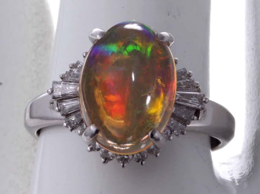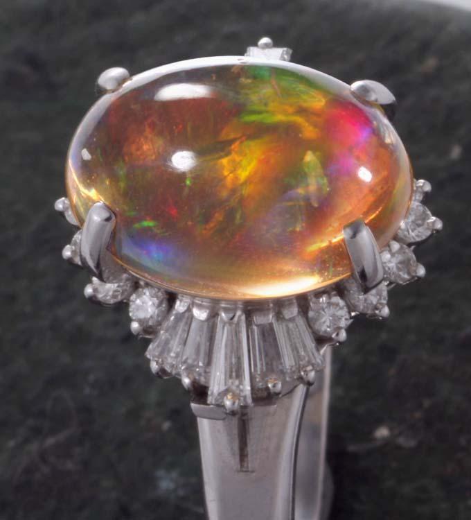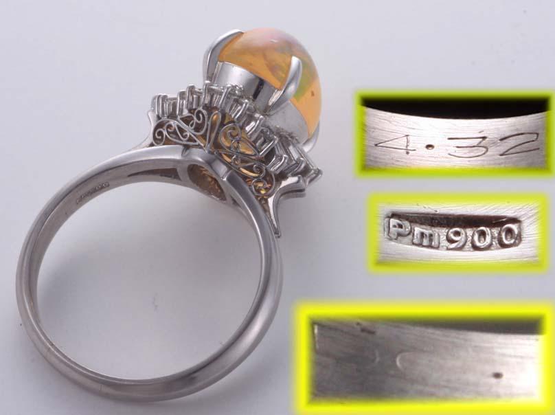 マテリアル | 天然オパール4.32カラット(カラット刻印あり)、天然ダイア(カラット刻印判読できず) 、プラチナ900製(Pm900の刻印) |