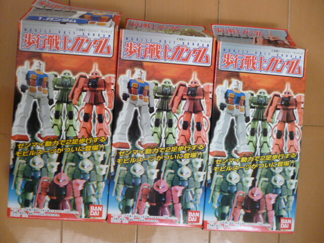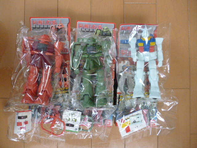 ★歩行戦士ガンダム 全3種「ガンダム」「量産型ザク」「シャー専用ザク」でゼンマイを巻く砥2足歩行する食玩のプラモです。