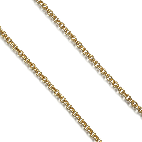 繊細な煌めきが装いを上品に飾るカットアズキチェーンネックレスです。金具付近についているラウンドのチャームパーツ部分サイドにシリアルナンバーが入っています。 |