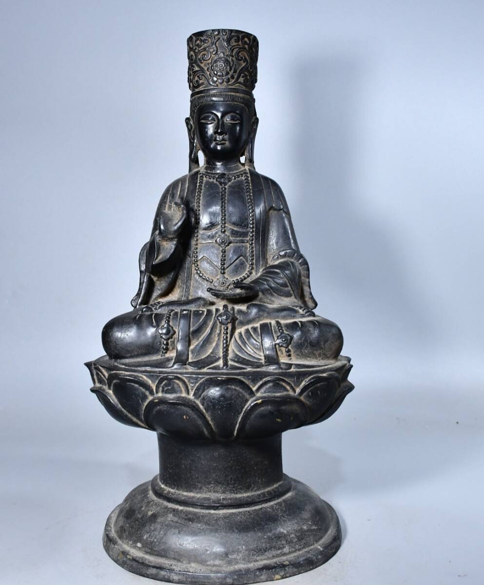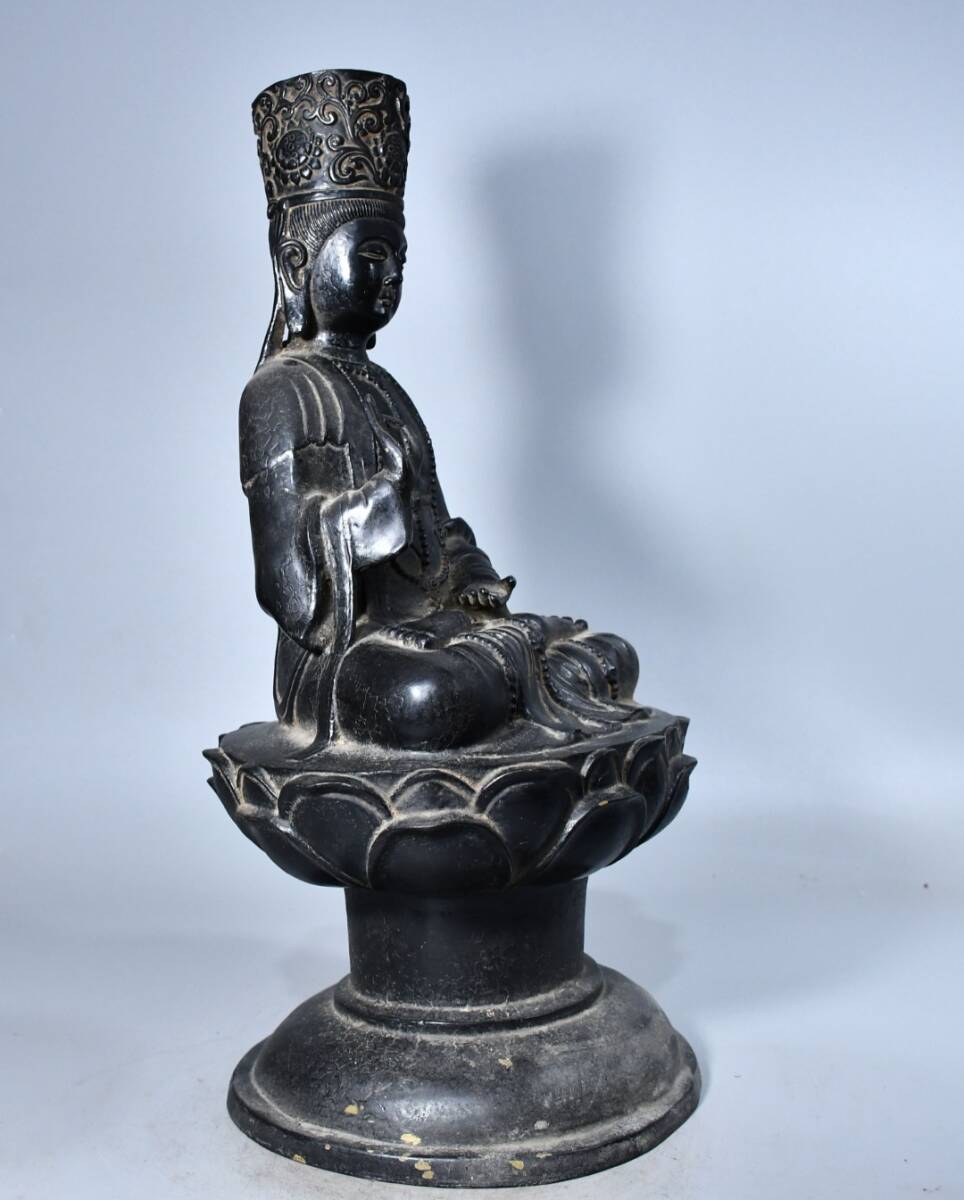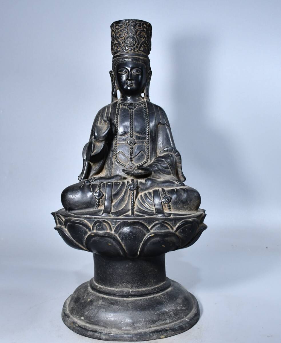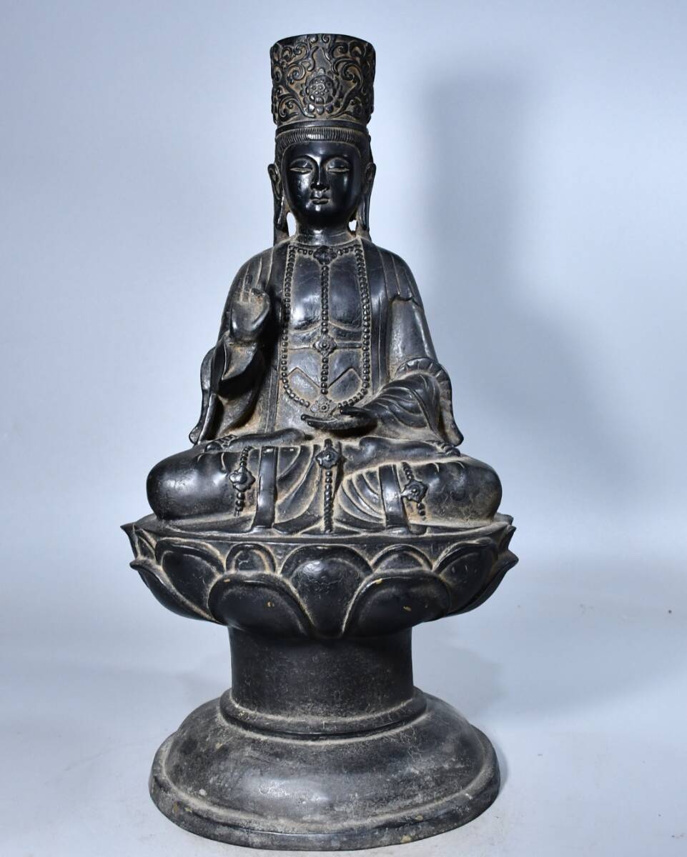 *珍品旧蔵* 清 純銅 老朽坐蓮華観音 仏像 奉納されていた 供養品 極細工 中国古玩 仏教古美術 古美味 骨董品 H46