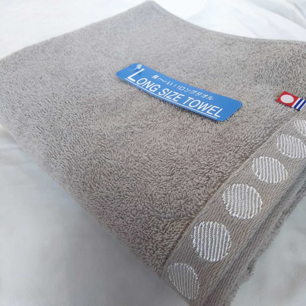 通常のバスタオルより20センチ長く、若干薄め、軽めのバスタオル、になります。