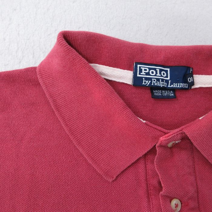 【商品名】 XL★古着 ラルフローレン 半袖 ブランド ポロ シャツ メンズ 90年代 90s ワンポイントロゴ 鹿の子 大きいサイズ コットン USA製 エンジ系