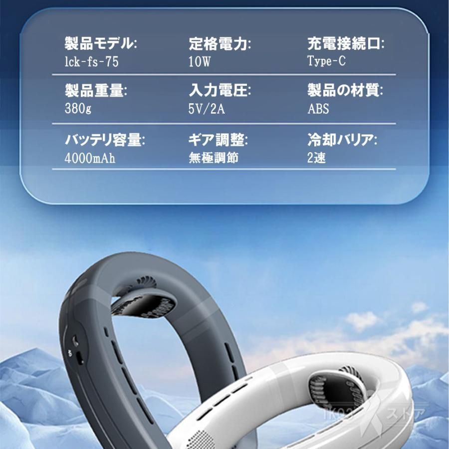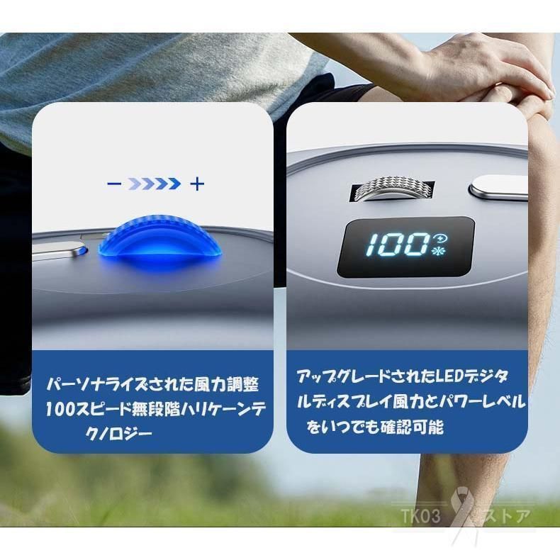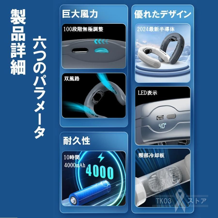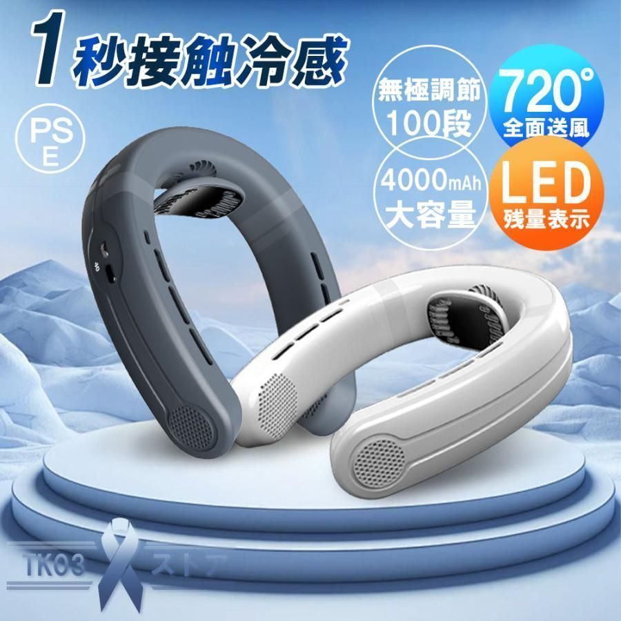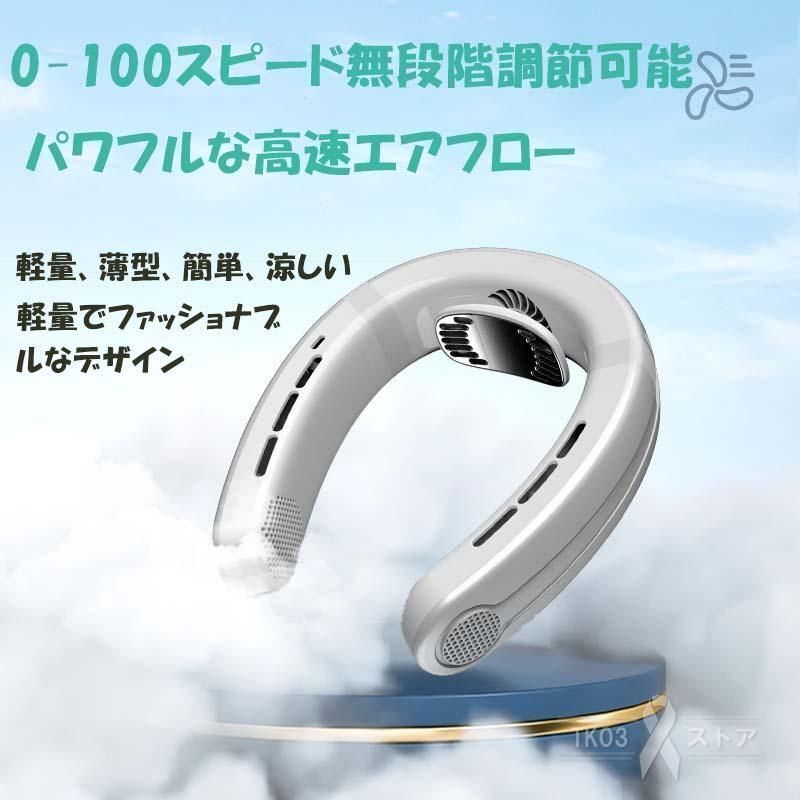 首掛け扇風機 新品 羽なし 4000mAh大容量 携帯扇風機 ネッククーラー 小型 卓上 手持ち 軽量 USB充電式 冷却プレート付 パワフル 風量