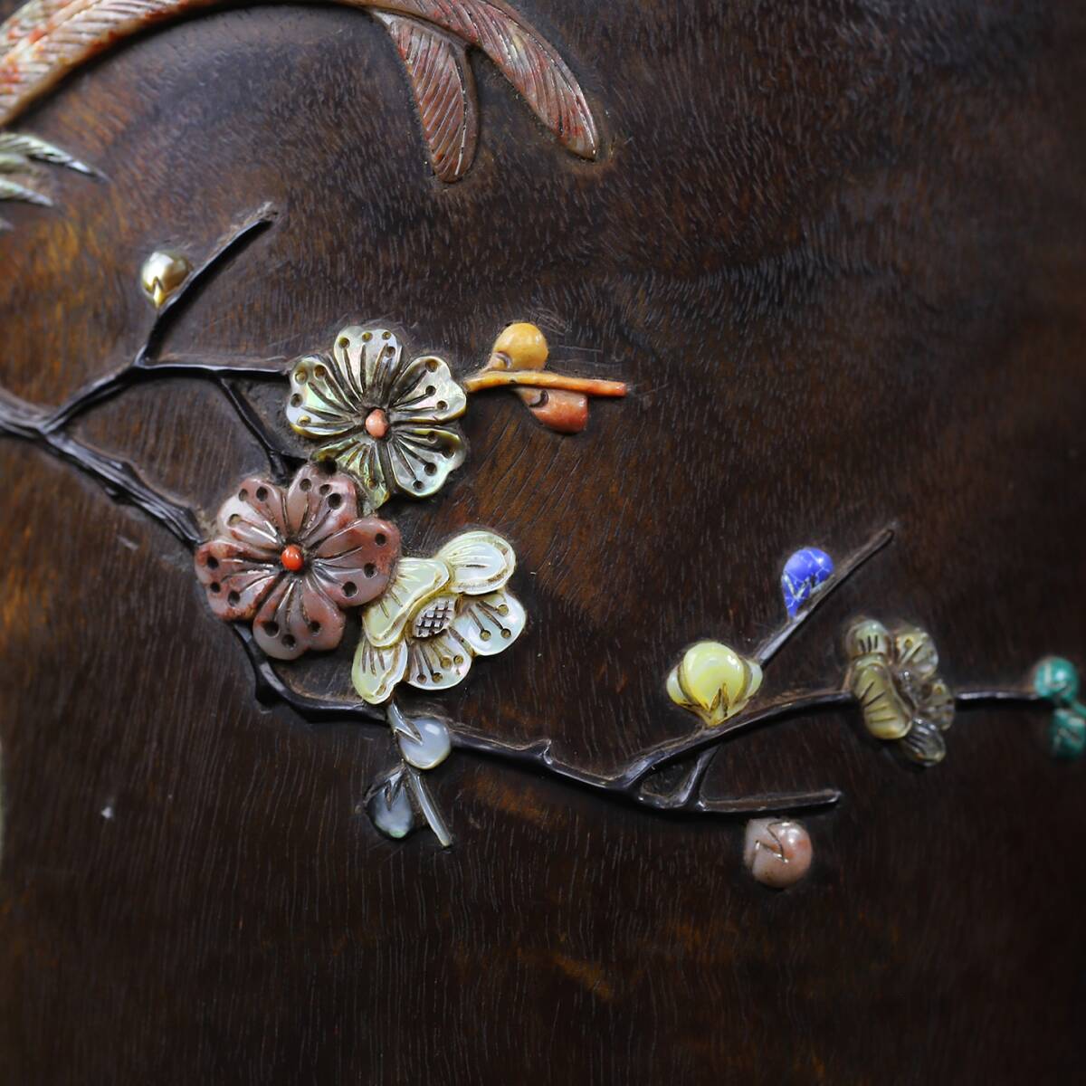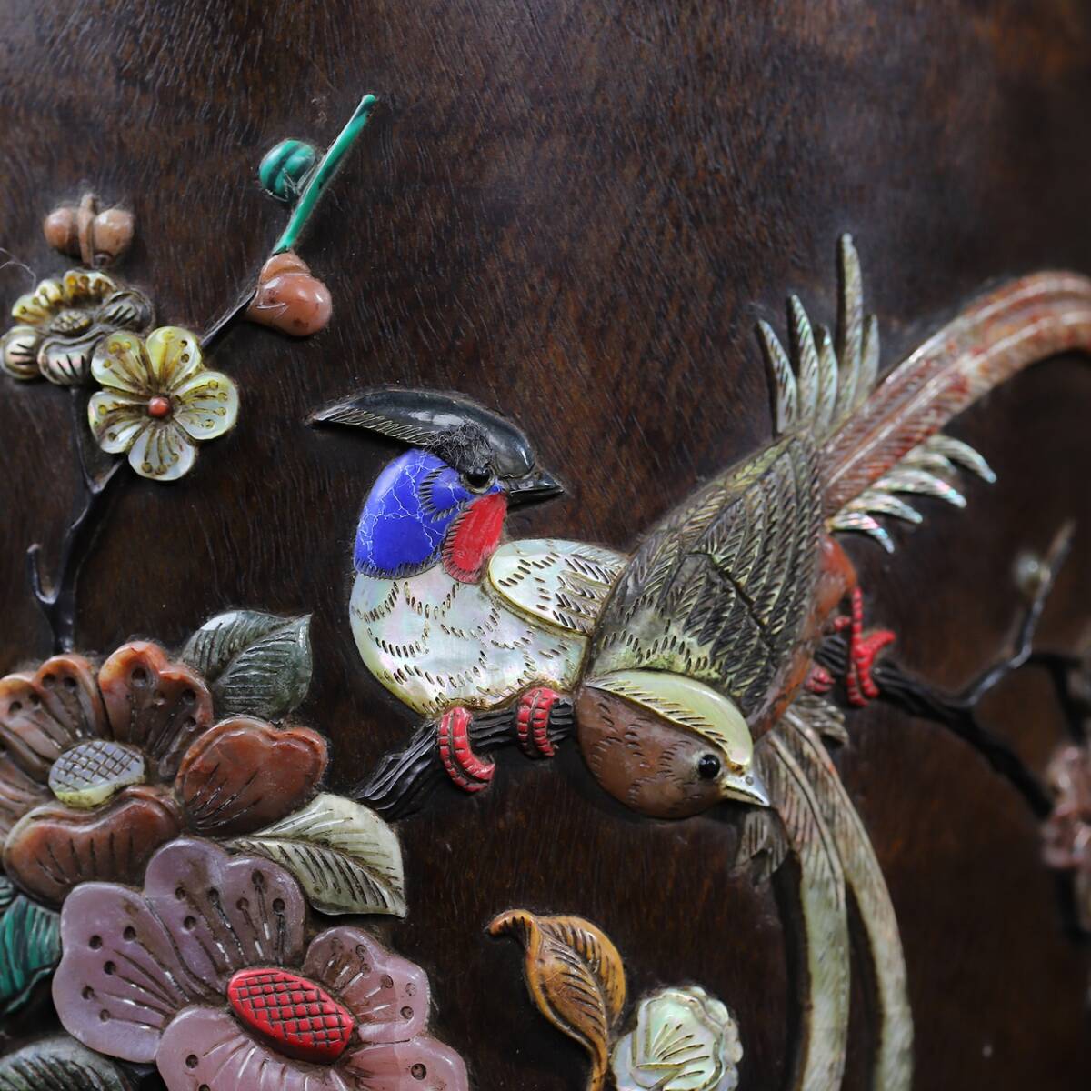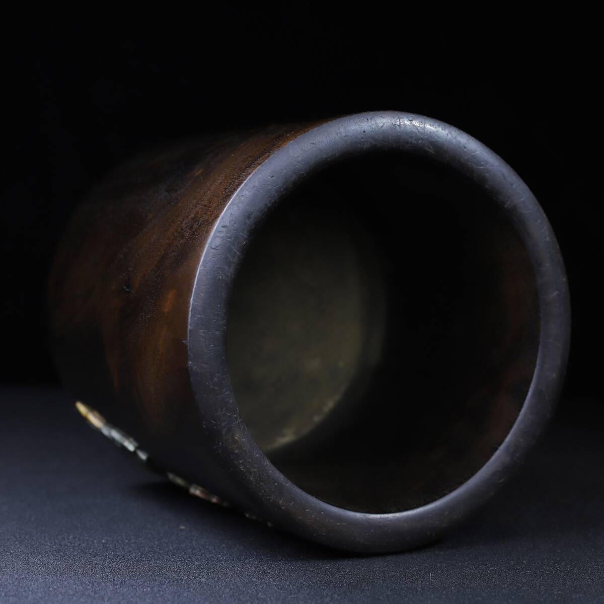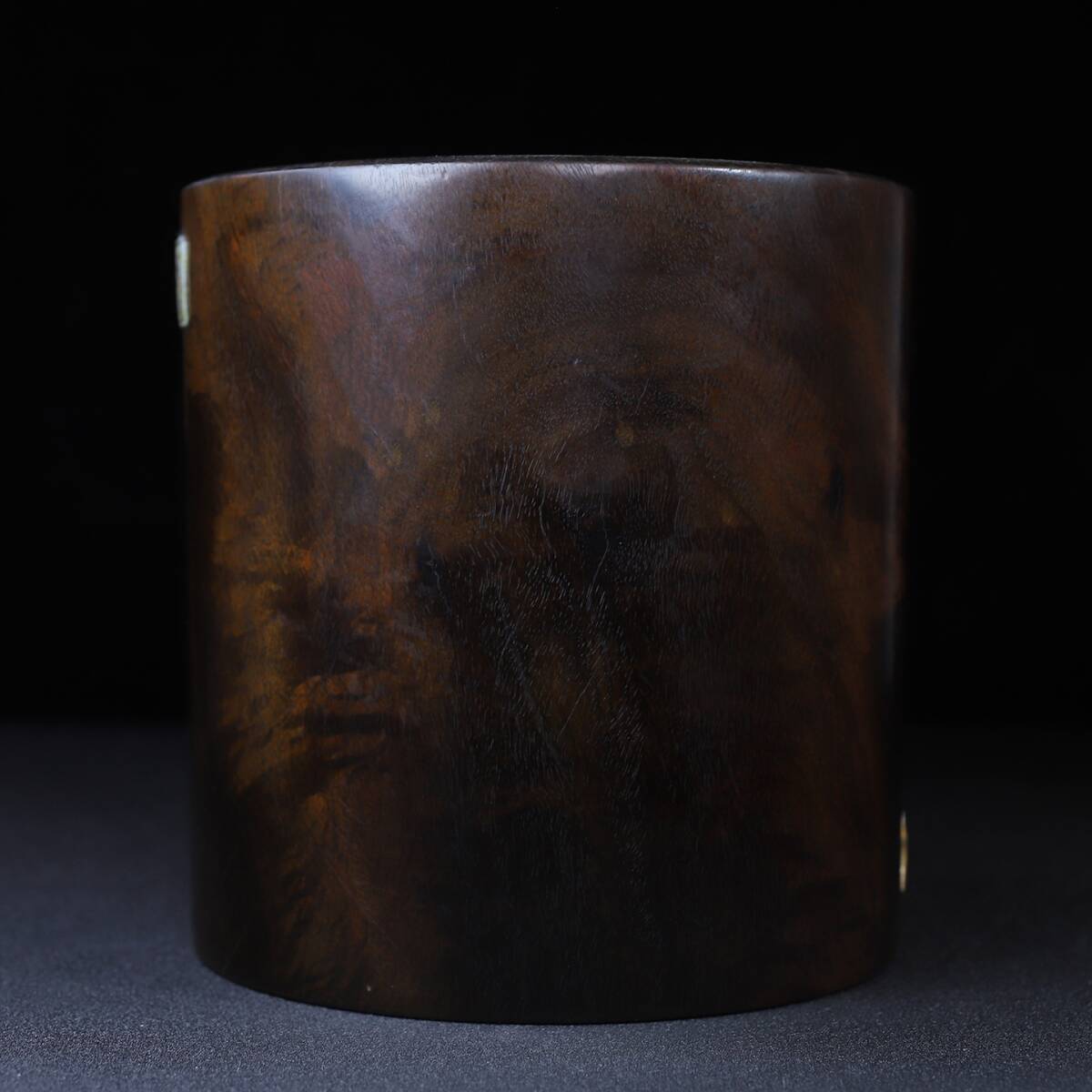 旧蔵 清 乾隆年製 花梨木 はめ込む彩貝 多寶圓筆筒 筆道具 文房具 木製 極細工 中国古玩 骨董品 古美味 206-21