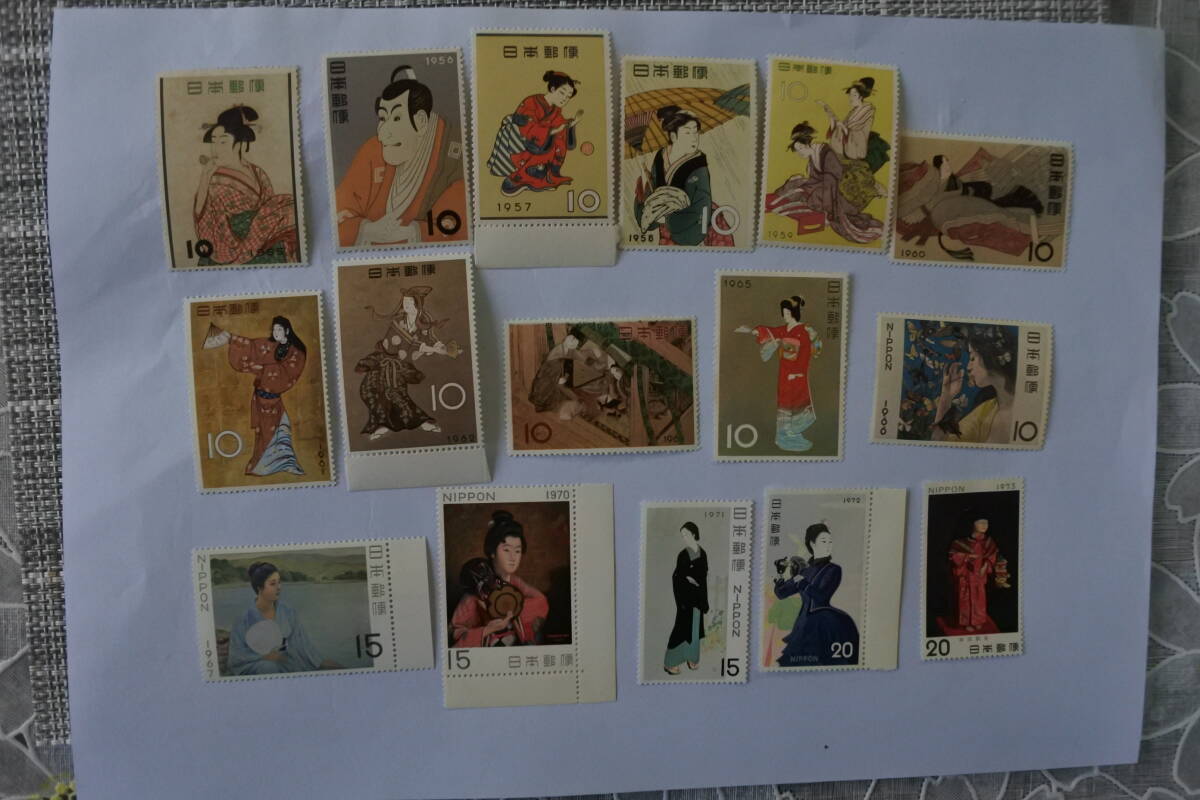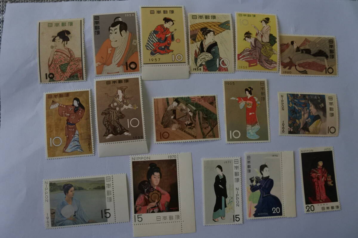 ☆ 1955年~1975年切手趣味週間(ビロード娘及び写楽など)16枚 ☆