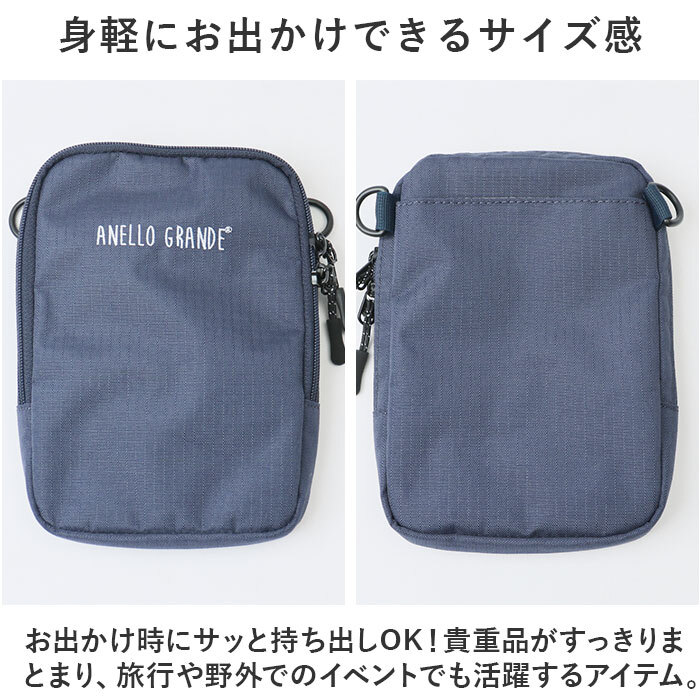 商品説明 | ・・必要最低限の小物をIN!anelloGRANDEのタープシリーズから、ミニマル派にうれしい「縦型ミニショルダー」が新登場。 ・【身軽にお出かけできるサイズ感】 ・お出かけ時にサッと持ち出しOK!貴重品がすっきりまとまり、旅行や野外でのイベントでも活躍するアイテム。 ・【アウトドアテイストな仕上がり】 ・両面に水を弾くはっ水ポリエステル素材を使用し、カジュアル感たっぷりなタープシリーズ。軽量ながらガシガシ使える丈夫な素材◎ ・【ガバっと開いて出し入れスムーズ】 ・ダブルファスナーで左右どちらからも、大きくオープン。中身を確認しやすく、サッと取り出しOK。 ・【スマホや現金、カードもひとまとめ】 ・内側は間仕切りポケットで分かれた2スペース仕様。スマホが縦向きにすっぽり収まり、少しの現金やカードも収納できてキャッシュレス派におすすめ。 ・【すぐに取り出せる外ポケット】 ・背面にもポケットを配置しており、コンパクトながら使い勝手ばっちり。 ・【両手が空いてストレスフリー】 ・長さ調節可能なショルダーベルトを取り付けて斜め掛け。移動の多い日もストレスなく、ポケットのない洋服でも安心。 ・【バッグインしたりアレンジも自在】 ・ショルダーを取り外して、お財布代わりにしたり小物ポーチとしても。使い方は自分次第! ・【毎日をもっとスタイリッシュに☆】 ・シーンを選ばず使えるシンプルなデザイン&実用性にこだわったつくり。1つ持っていればヘビロテ間違いなし。 ・【ポケット仕様】 ・内側:ファスナーポケット×1、オープンポケット×1、カードポケット×3 ・背面:オープンポケット×1 |