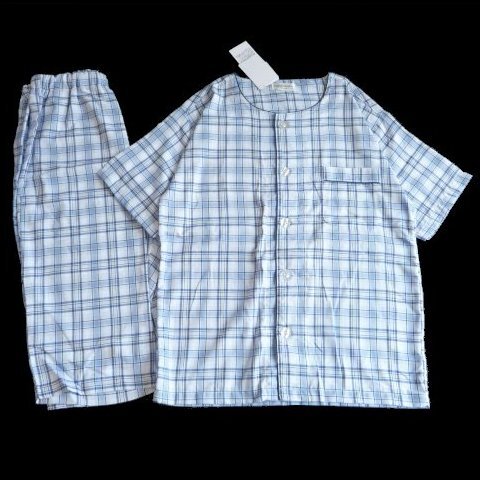 新品 メンズ パジャマ M 半袖 7分丈ズボン Smith & stricker DRY 介護 大きいボタン チェック 紳士 寝巻 ルームウェア ナイトウェア