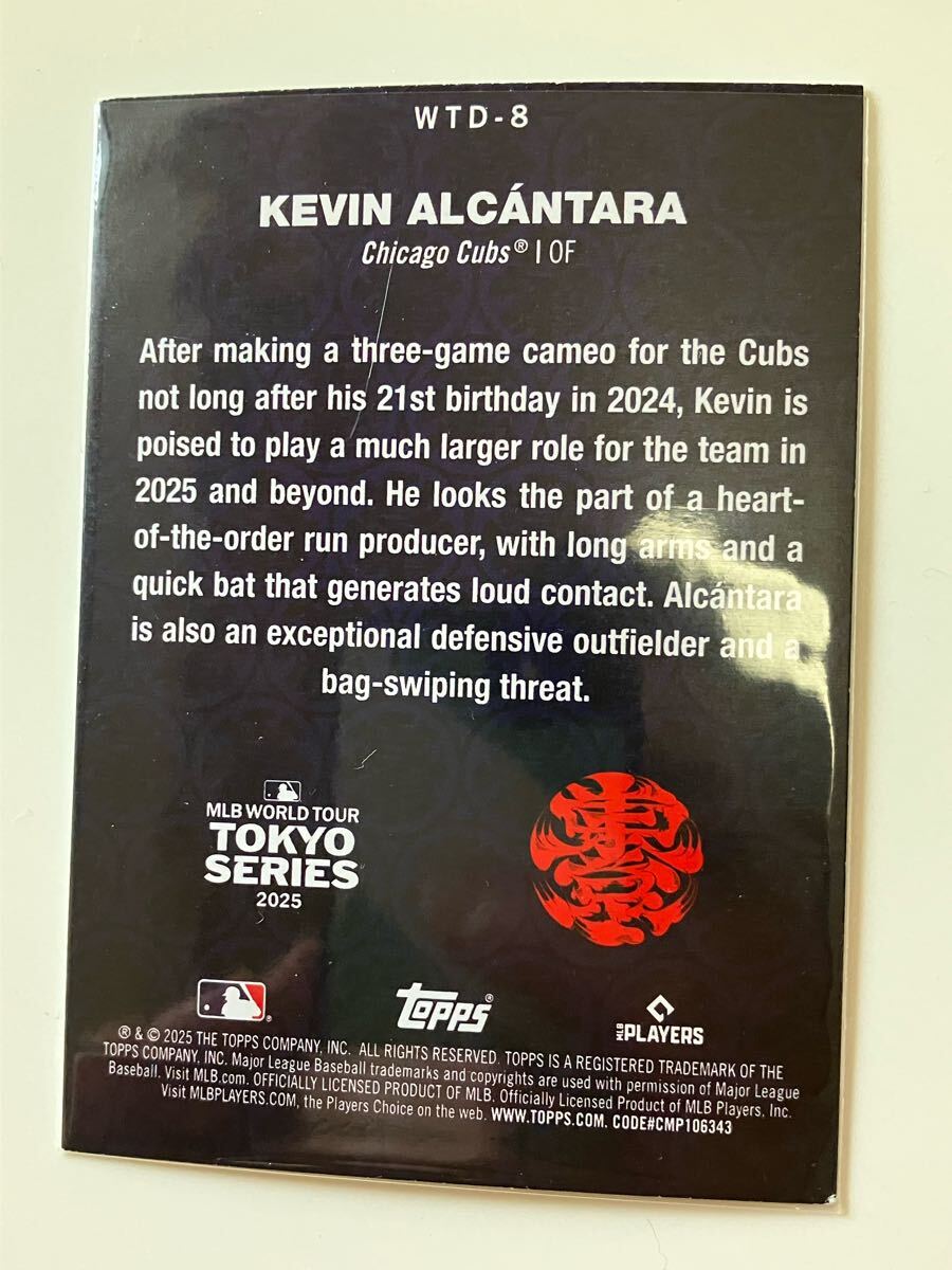 Topps MLB 2025 Tokyo Series WTD-8 Kevin Alcantara ケビン・アルカンタラ ルーキーカードです。