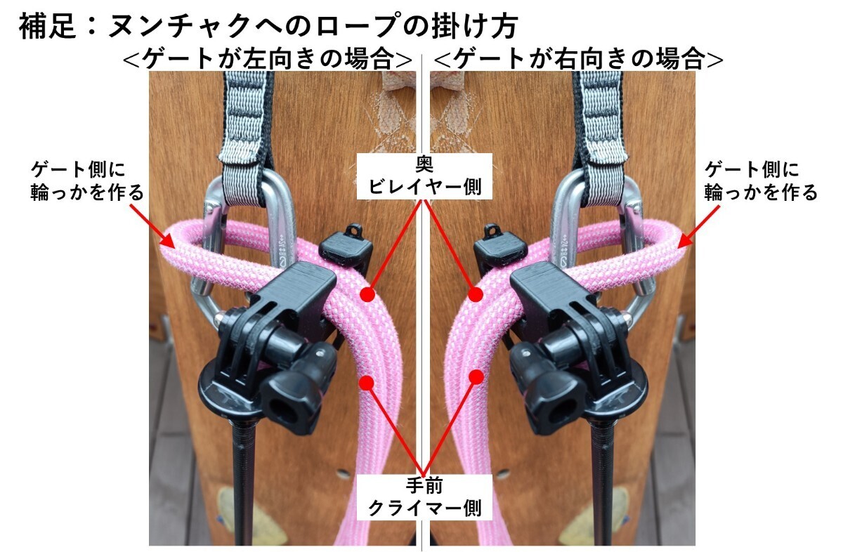 ②すでに取り付けられているヌンチャクにロープを掛ける