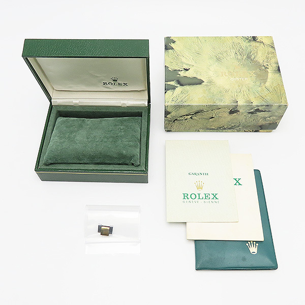 メンテナンス情報 コンディション | 弊社指定の時計業者にて、O.H.(分解掃除)、新品仕上げ済みです。 ケース・ブレスにうっすらと小キズが見られますが目立つようなものではございません。針の夜光部分に腐食が見られます。ブレスの伸びもあまり見られません。文字盤の状態も良いです。全体的に見ても綺麗で良い状態を保っています。弊社指定の時計業者にてメンテナンスを済ませた状態の良い商品です。 |