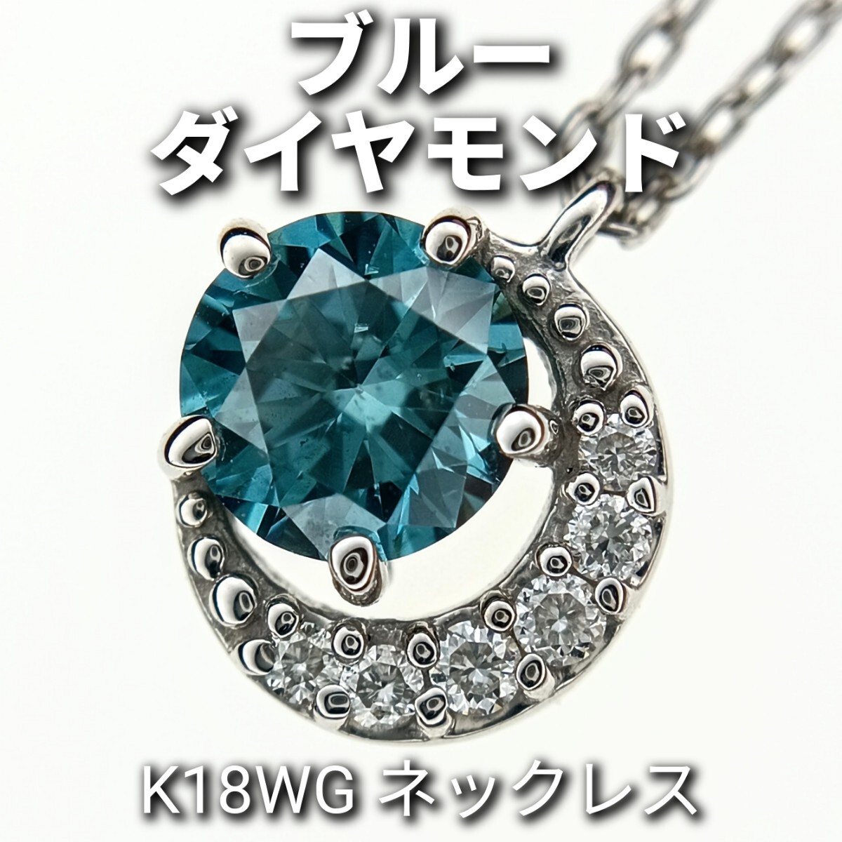 ブルーダイヤモンド ダイヤモンド 0.26ct K18WG ネックレス 月モチーフ ☆新品同様磨き☆