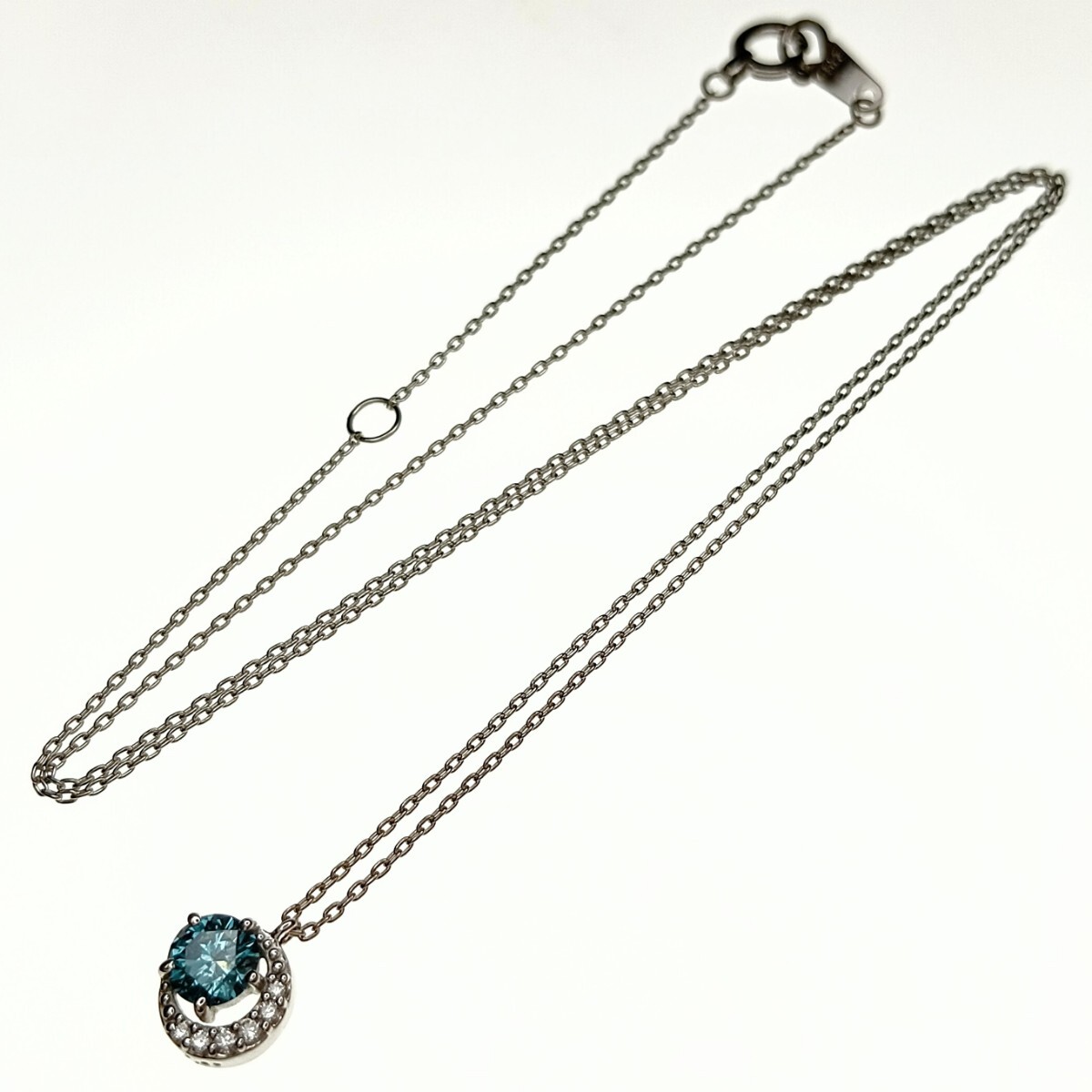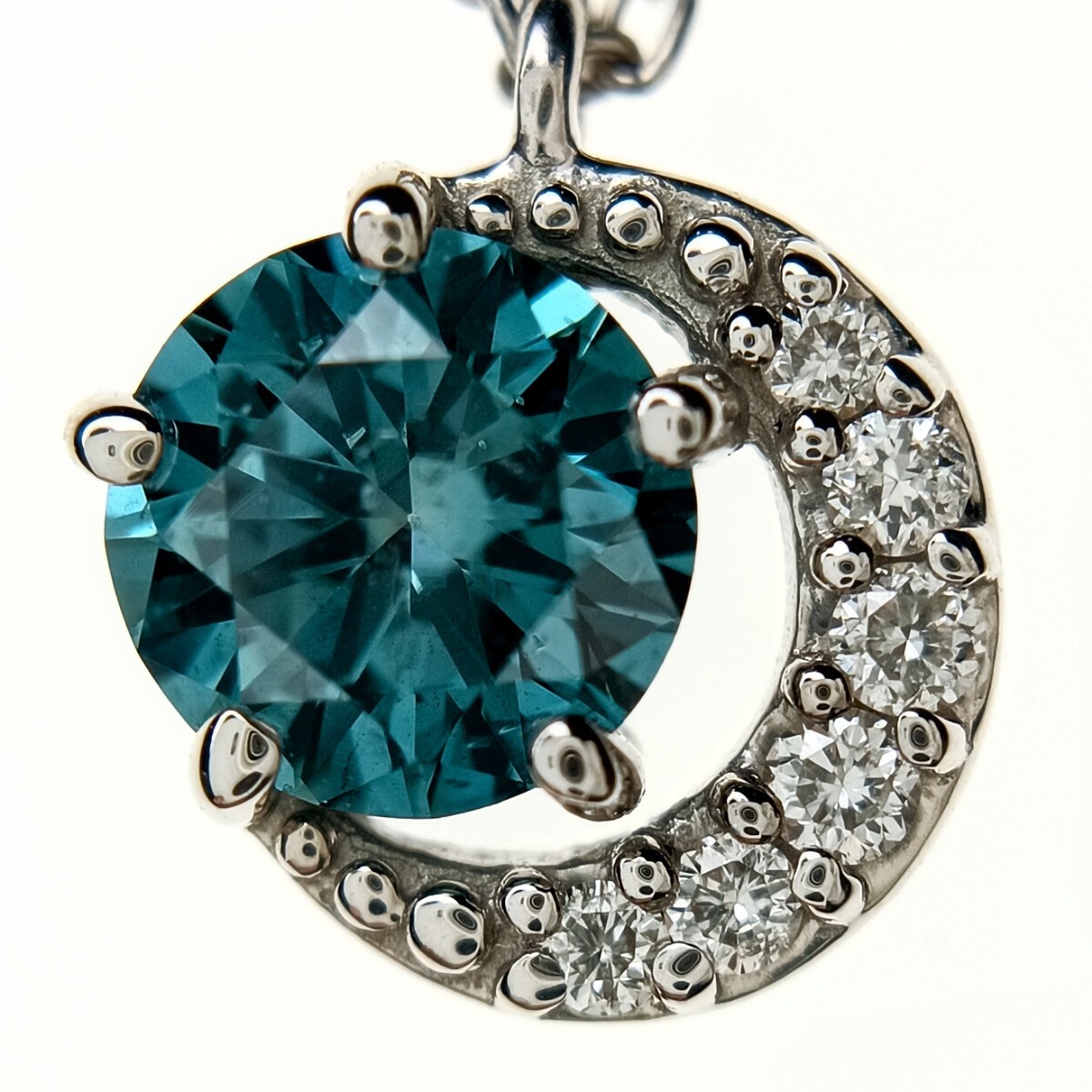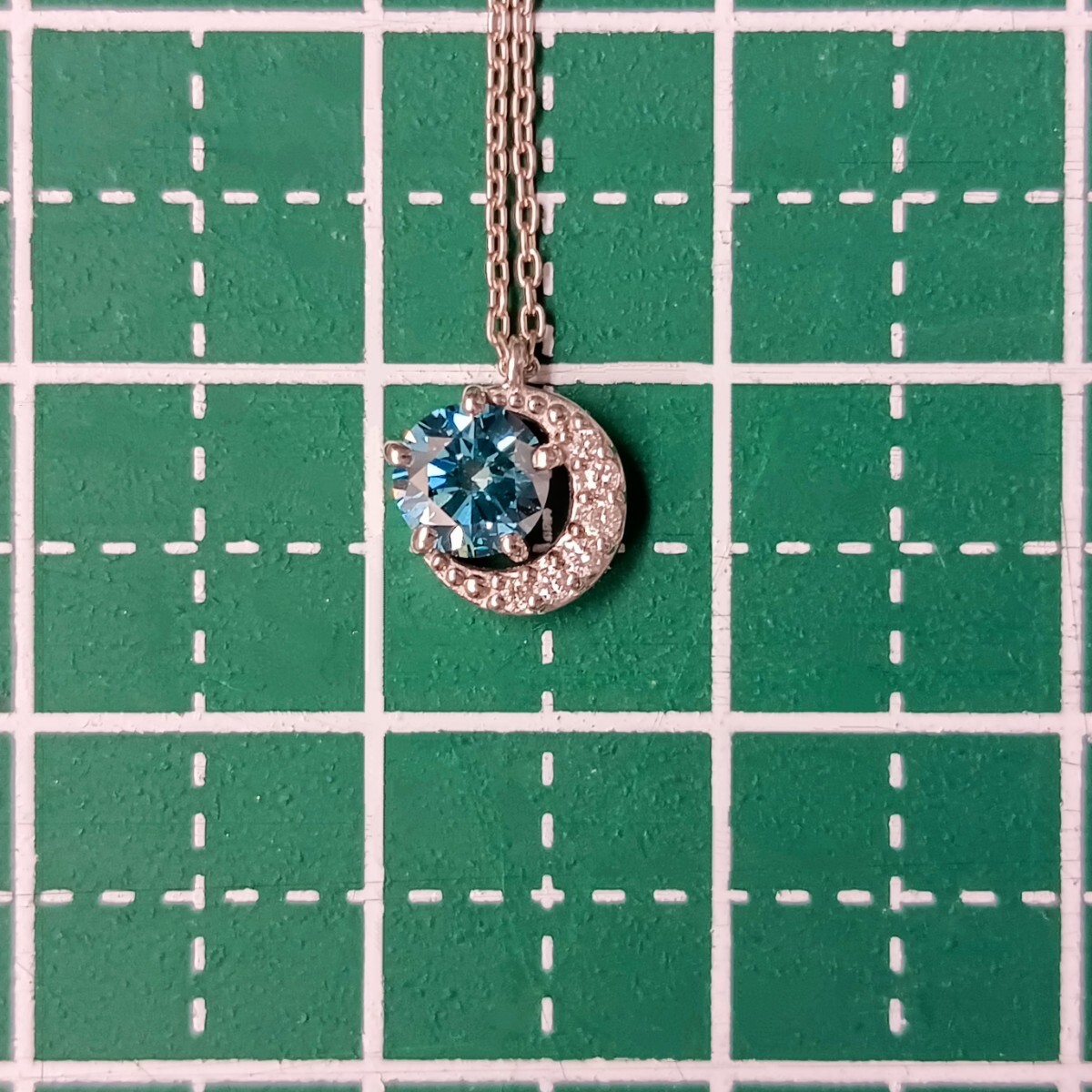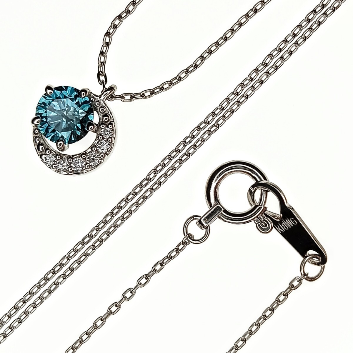 瑞々しく力強い輝きと、鮮やかなブルーが大変魅力のブルーダイヤモンドがセレクトされたネックレス。