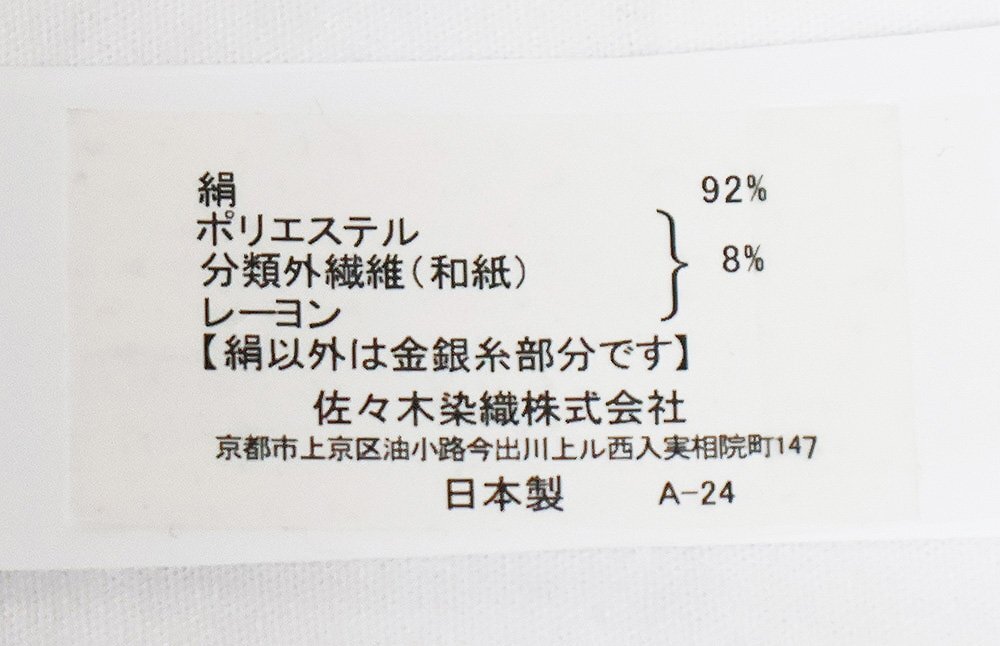 | 生地 | 表地:絹92%, レーヨン・,ポリエステル8% |